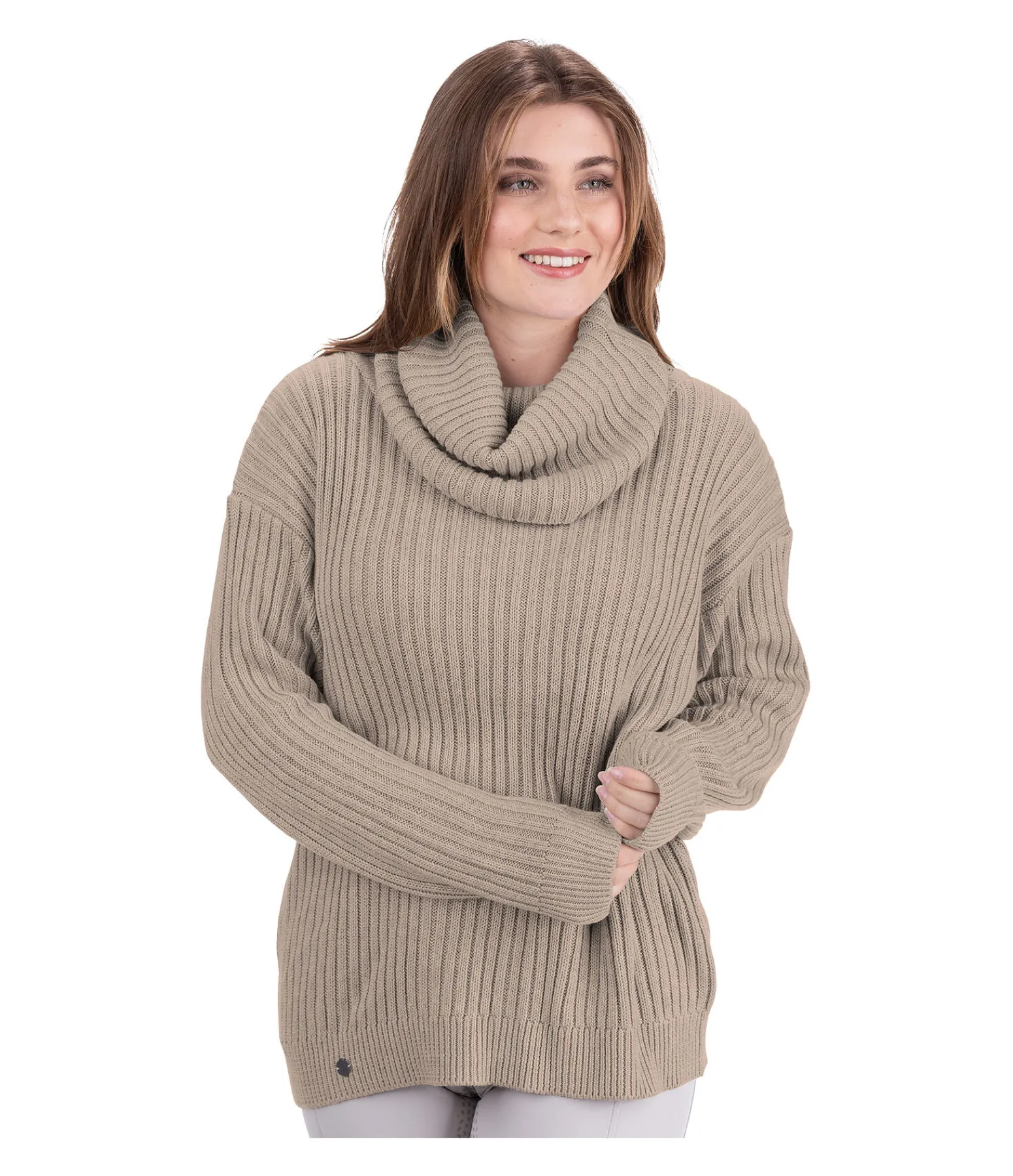 Pull-over en maille côtelée. Coupe décontractée avec large col roulé. Finitions côtelées. 53 % coton, 40 % viscose, 7 % nylon.