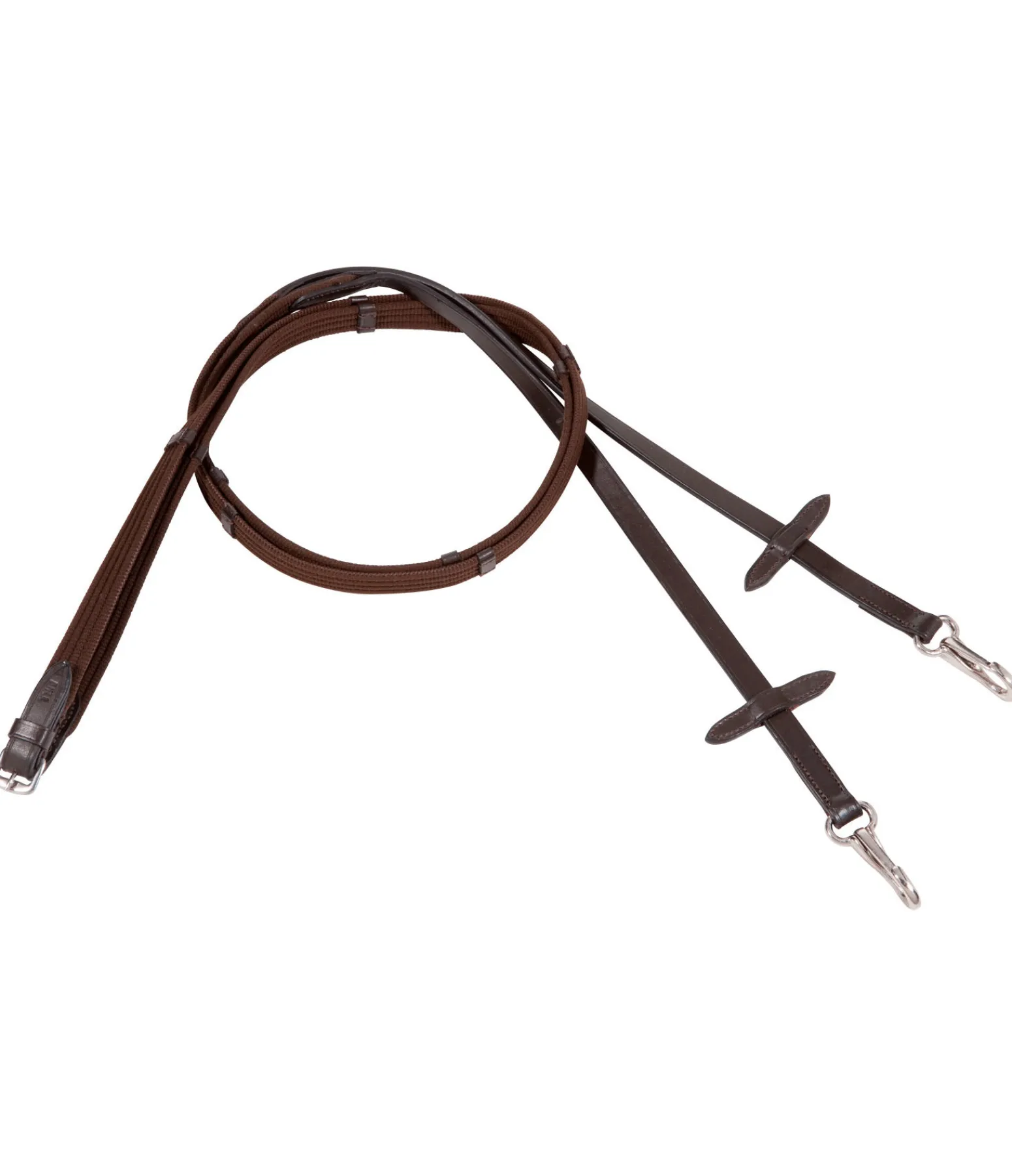 Rênes en cuir avec mousquetons pour une fixation rapide. 290 x 2 cm.