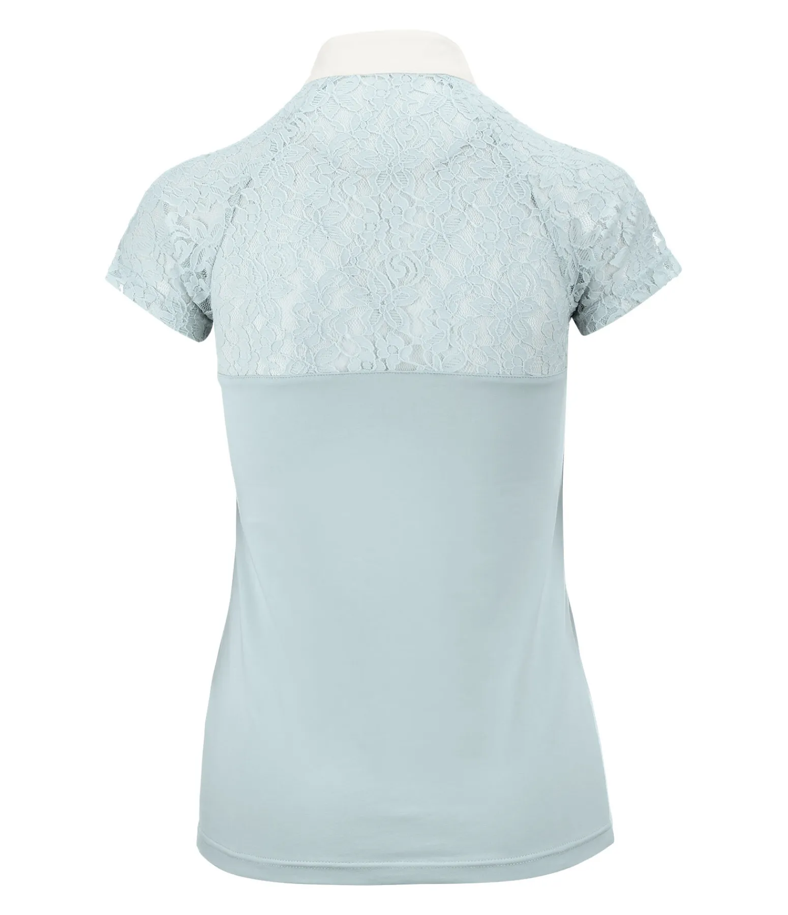 Élégant T-shirt de concours avec empiècements et manches en dentelle douce. Col montant avec fermeture à glissière. Respirant et à séchage rapide. 95 % coton, 5 % élasthanne. Recommandation : laver à la main ou dans un sac de lavage.