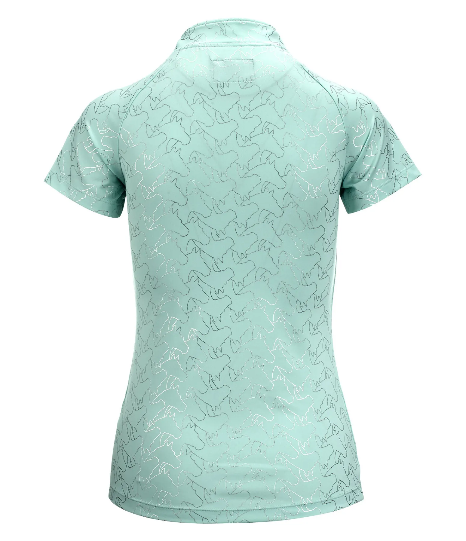 T-shirt chic et technique à manches courtes. Imprimé all-over métallisé motif tête de cheval. Manches raglan et petit col montant avec fermeture à glissière et protège-menton. Respirant et à séchage rapide. 88 % polyester, 12 % élasthanne.