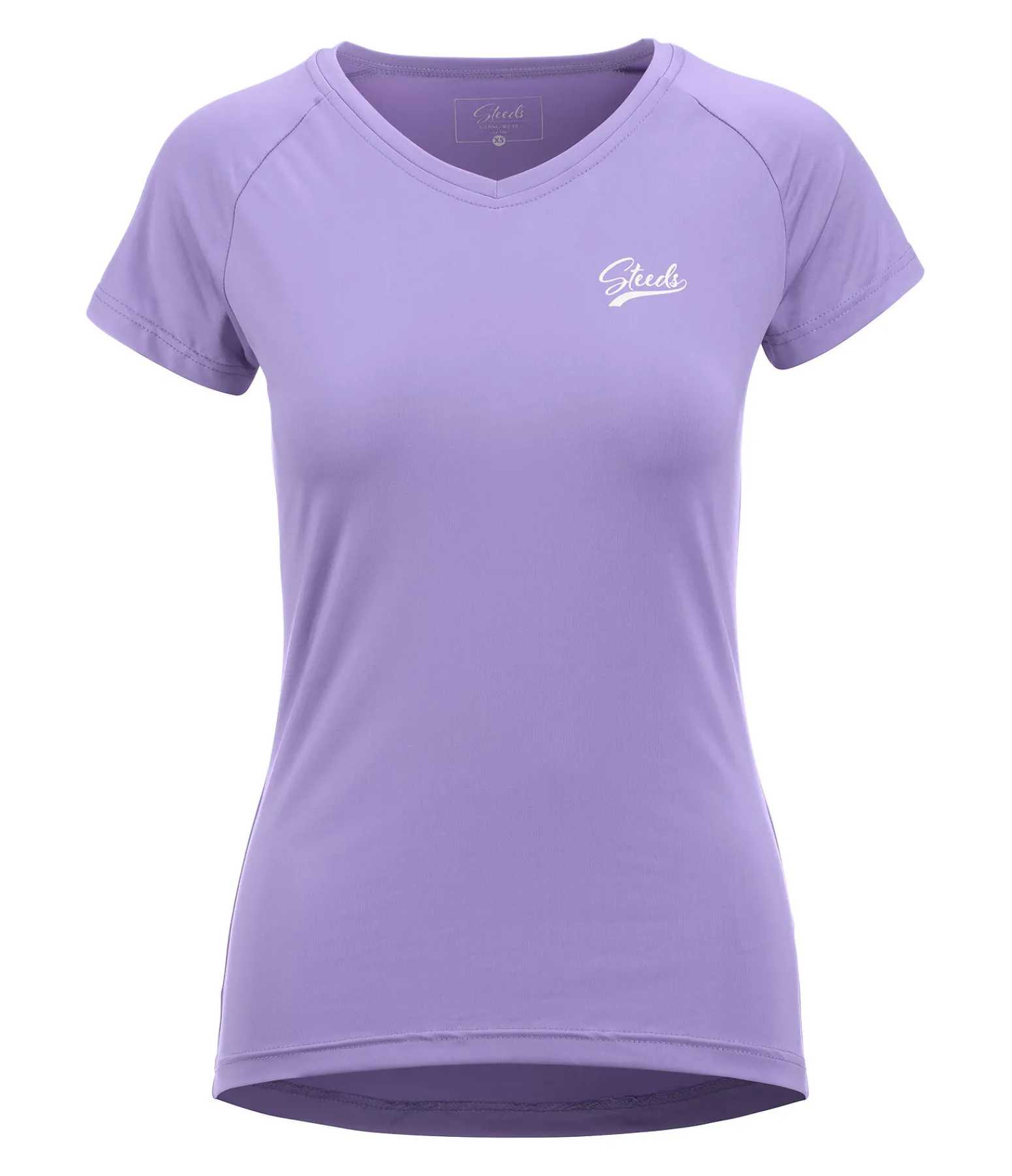 T-shirt col en V à manches courtes. Doux et extensible. Matière respirante à séchage rapide. Imprimé argenté sur la poitrine. 88 % polyester, 12 % élasthanne.