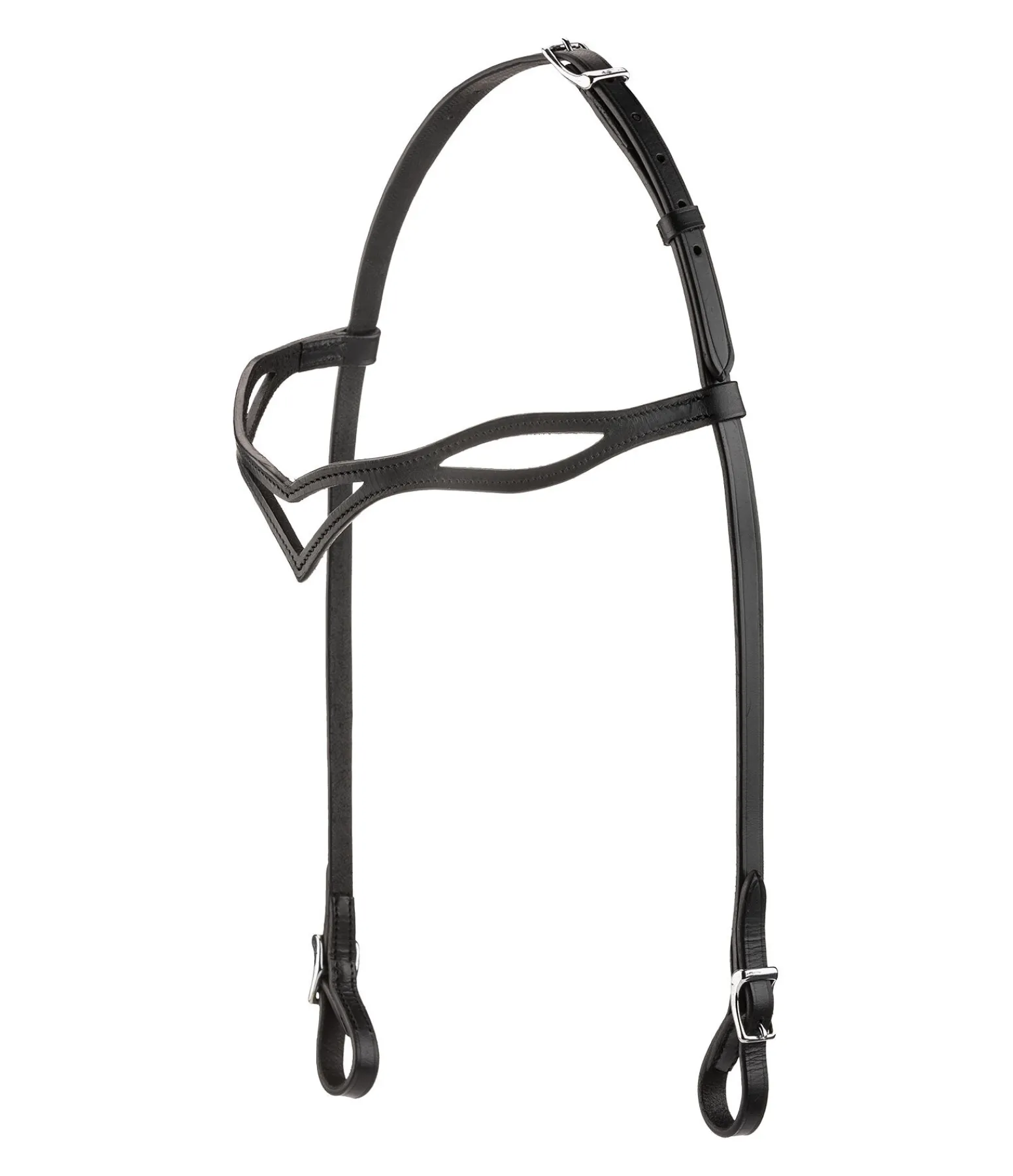 Têtière classique en cuir véritable souple. Frontal en V avec motif ajouré.
