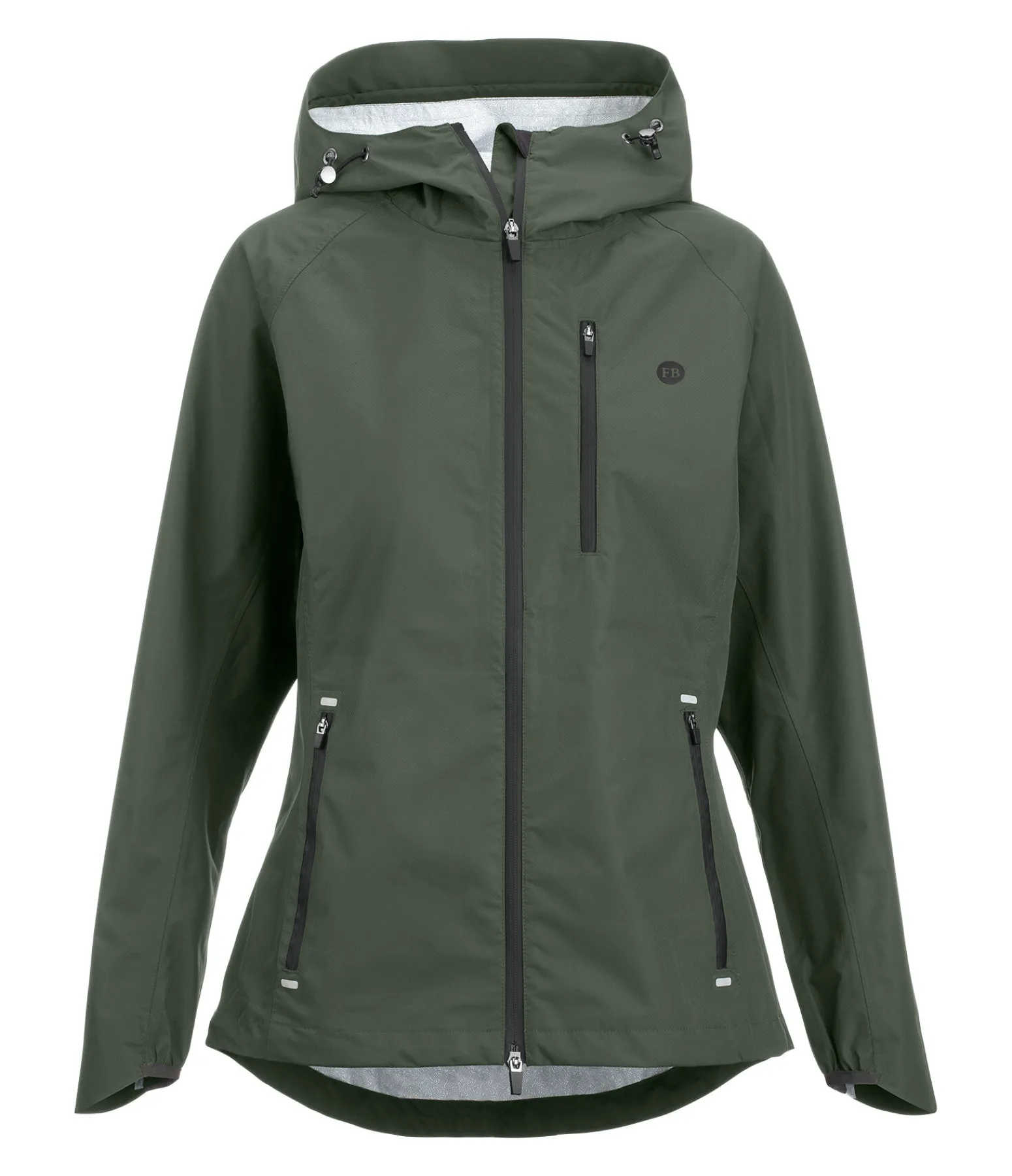 Veste d’équitation technique et légère idéale. Imperméabilité maximale 20.000 mm avec coutures thermosoudées. Haute respirabilité (10.000 MVP) et coupe-vent. Les fermetures à glissière étanches sous les bras assurent une ventilation parfaite. Capuche ajustable à fixer dans le dos par bouton-pression. Fermeture à glissière double sens étanche avec sous-patte et protège-menton. 2 poches zippées imperméable à l’avant et 1 poche zippée imperméable sur la poitrine. 100 % polyester.