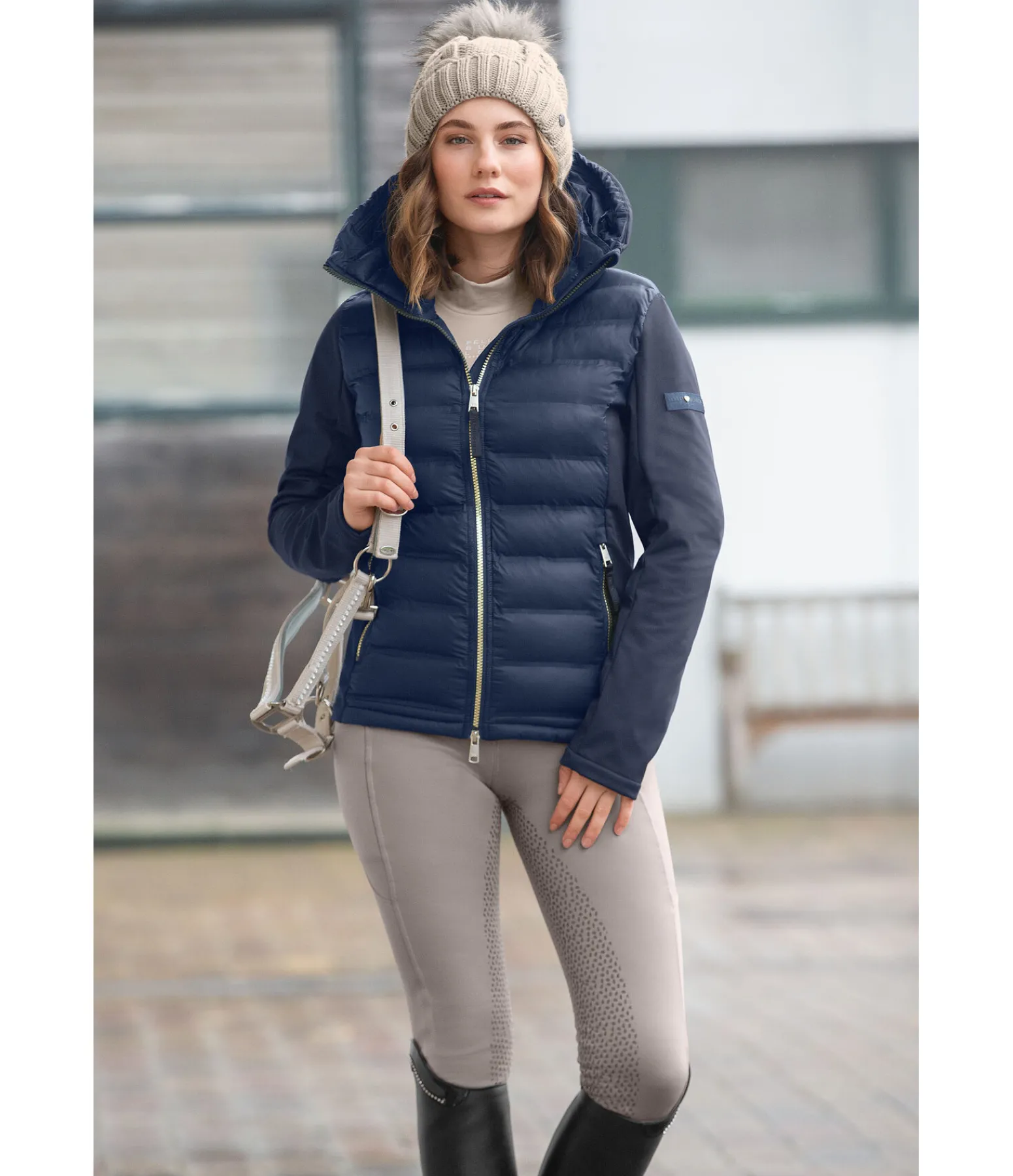 Superbe combinaison de softshell extensible et de nylon avec un garnissage très doux en imitation duvet devant et derrière. Coupe-vent. Double col et capuche rembourrée repliable dans le large col extérieur par fermeture à glissière. Coutures thermosoudées, fermeture à glissière double sens avec sous-patte et protège-menton, 2 poches zippées devant. Logo élaboré sur la manche et le col. Avant, dos, col intérieur et capuche 100 % nylon, matière softshell 92 % polyester, 8 % élasthanne.