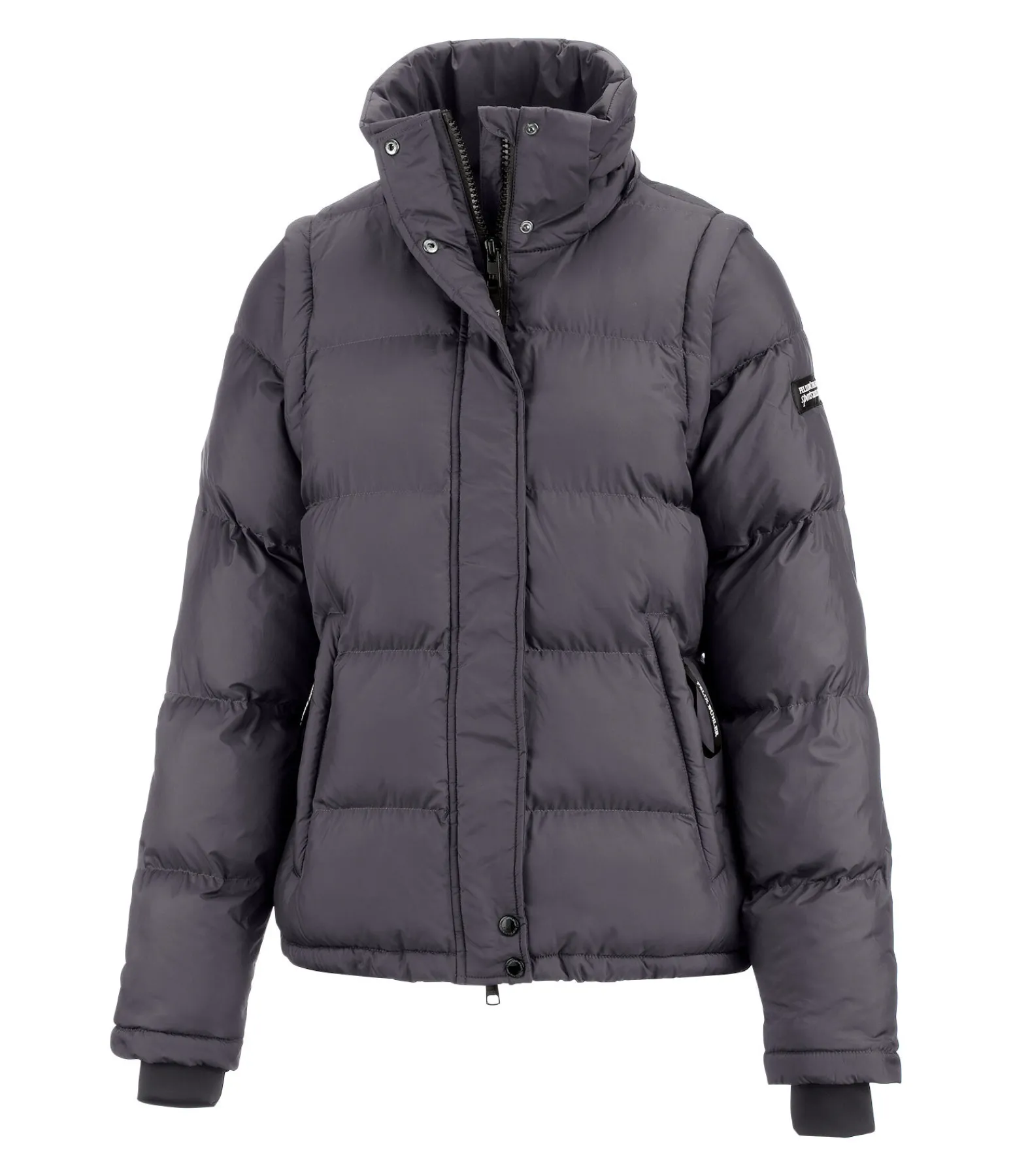 Une veste et un gilet en une seule pièce ! Veste d’équitation chaude avec manches amovibles zippées. Garnissage doux imitation duvet. Col montant. Capuche doublée en polaire, amovible et ajustable par cordon de serrage. Bouton-pression pour fixer la capuche dans le dos. Fermeture à glissière double sens dissimulée. 2 poches avant doublées en polaire, zippées et dissimulées. Badge Felix Bühler sur le bras. Finition en bord-côte sur le bas des manches. Taille ajustable par cordon de serrage. 100 % polyester.