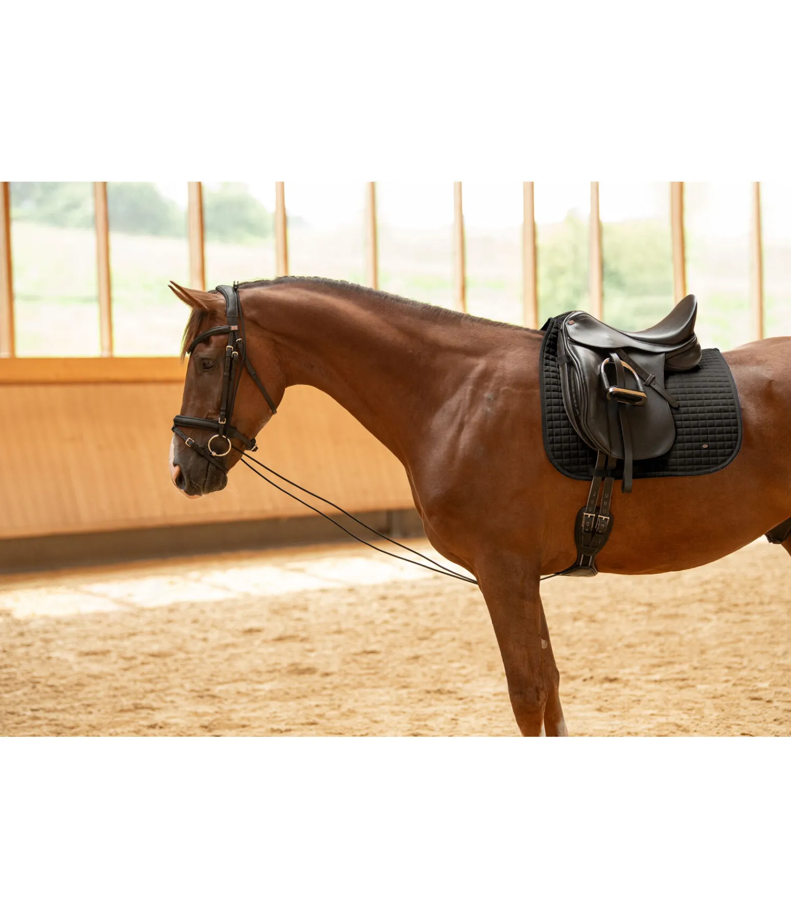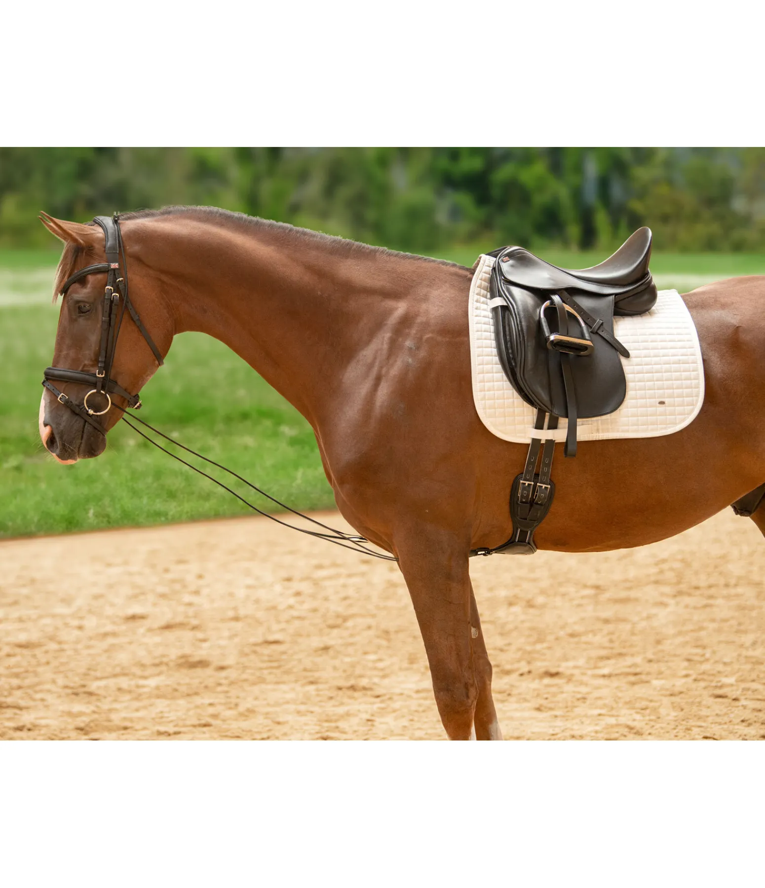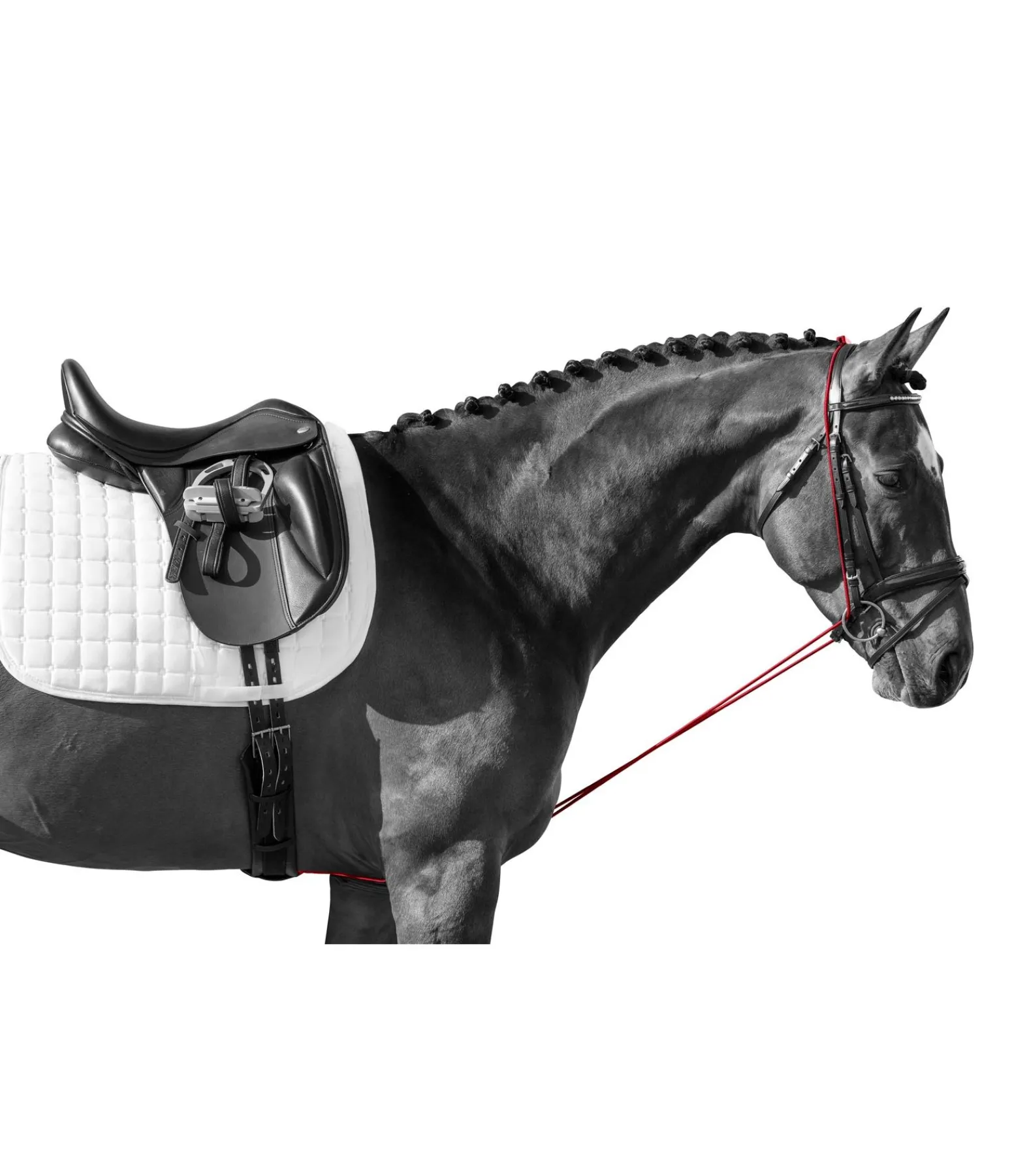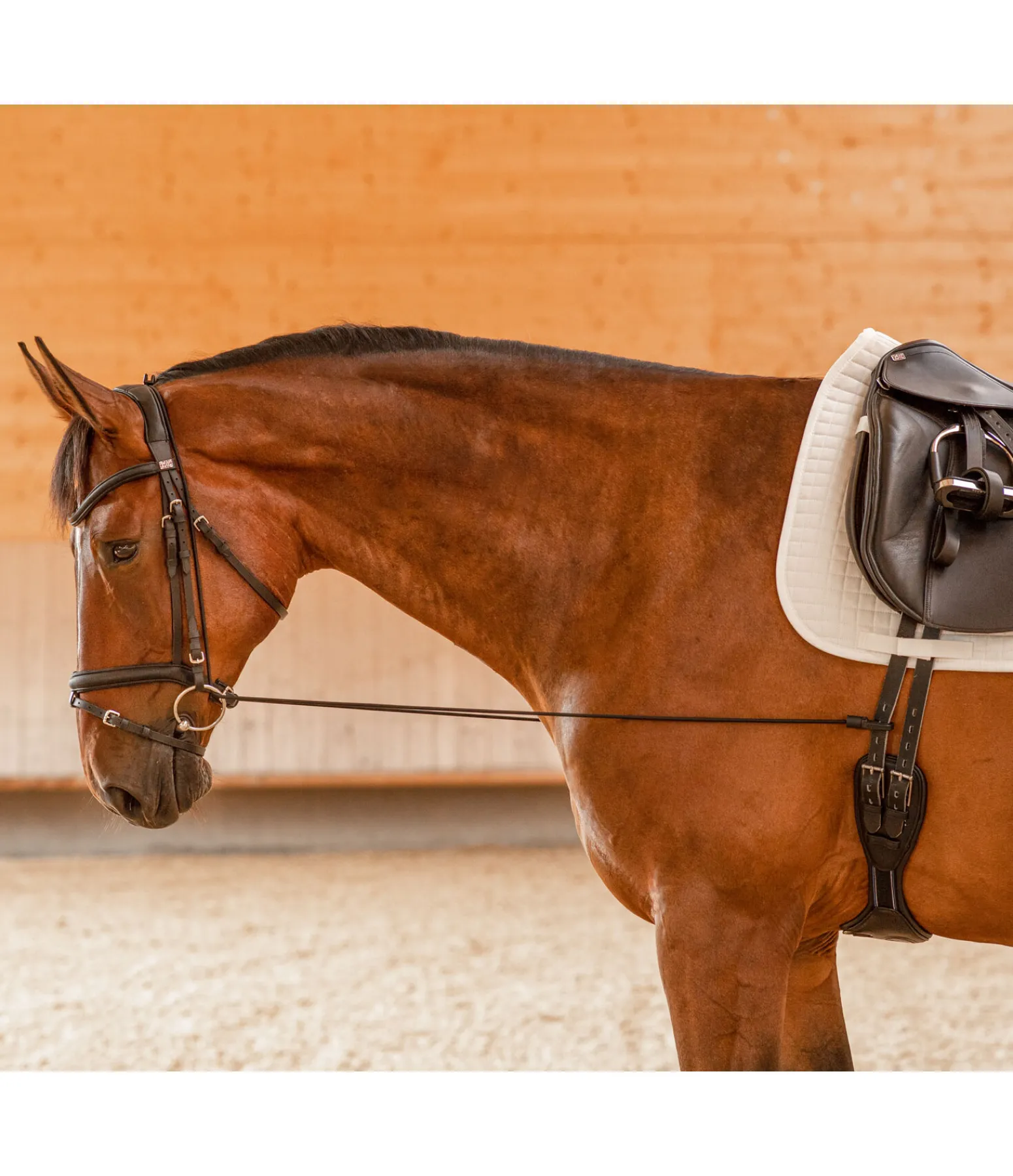 L’enrênement idéal pour les chevaux qui raidissent la nuque et pèsent sur la main. Convient notamment pour la formation des jeunes chevaux. Entièrement élastique et réglable en continu.