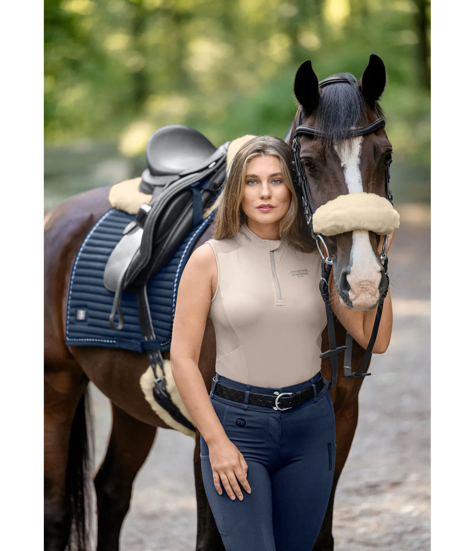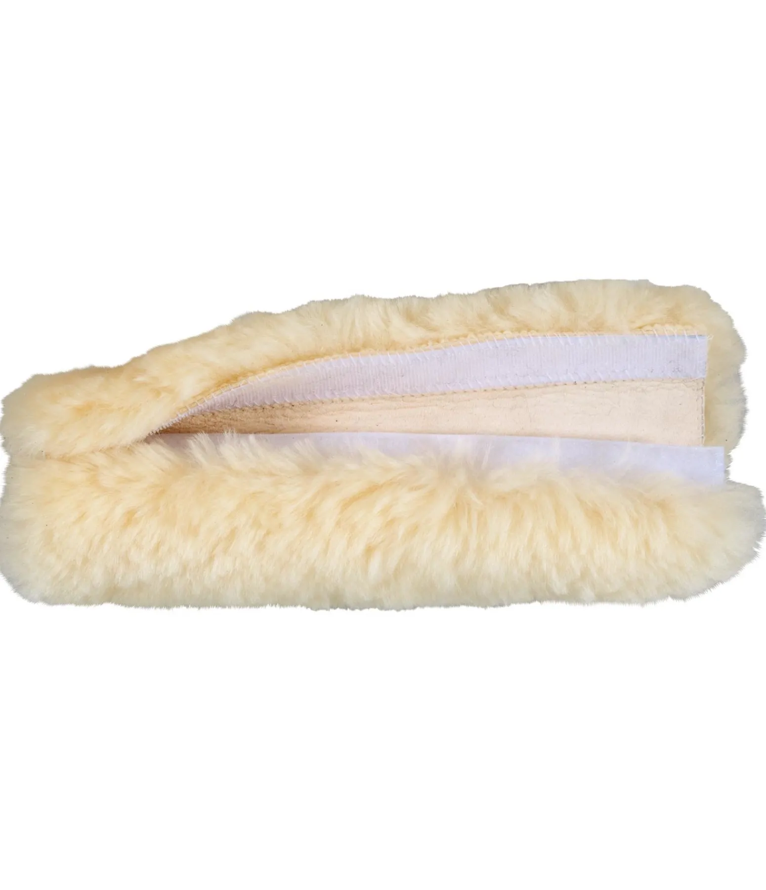 Fourreau en fourrure d’agneau avec bande auto-agrippante qui permet d’éviter les irritations et les points de pression dans la nuque et sur le chanfrein. 100 % fourrure d’agneau mérinos. Lavable à 30 degrés avec le programme de lavage spécifique pour la laine. Veuillez utiliser uniquement une lessive spéciale pour fourrure d’agneau. P (Poney) : 21 cm F (Full) : 25 cm.