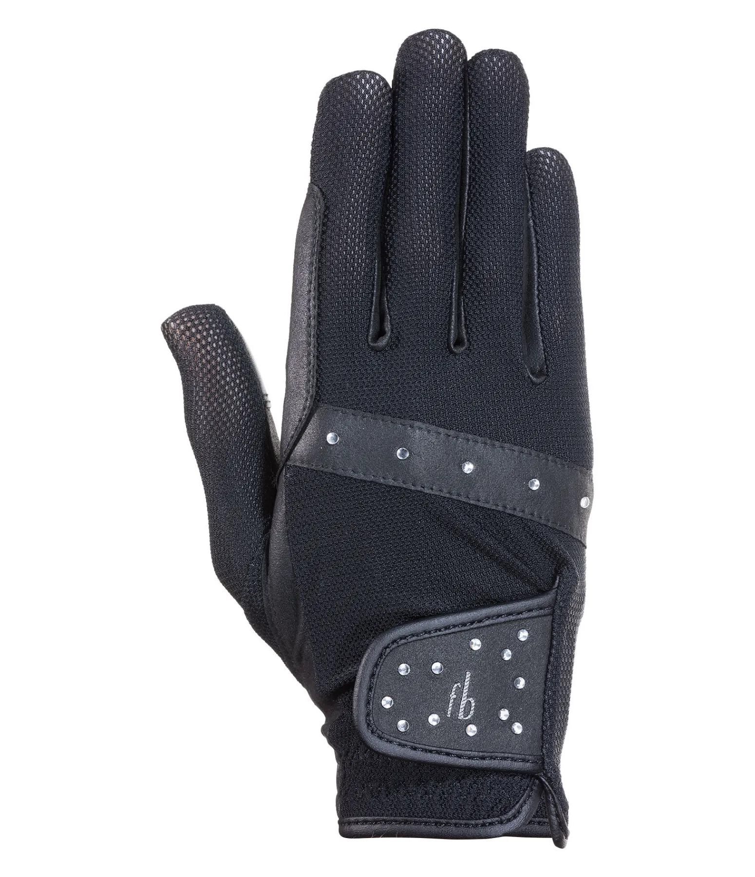 Gants d’équitation d’été élégants. Tissu mesh respirant sur le dessus de main, idéal pour les chaudes journées. Strass décoratifs. Fermeture par patte auto-agrippante avec logo Felix Bühler. Renfort de rêne sur l’index pour éviter les irritations dues aux frottements. Gants compatibles avec les écrans tactiles. Dessus et paume 100 % nylon. Mesh 100 % polyester.