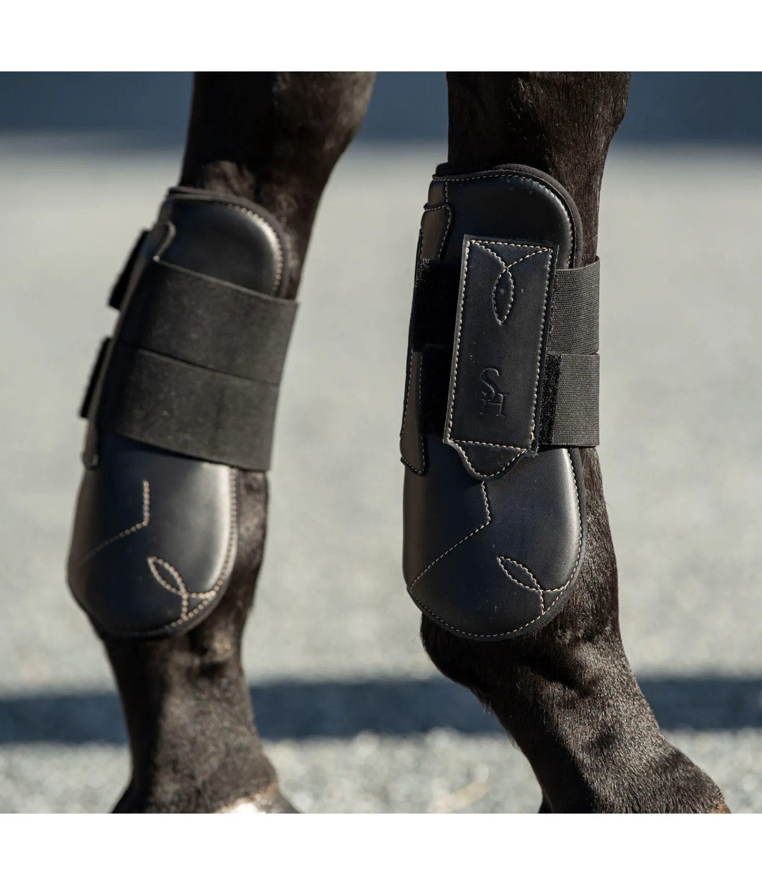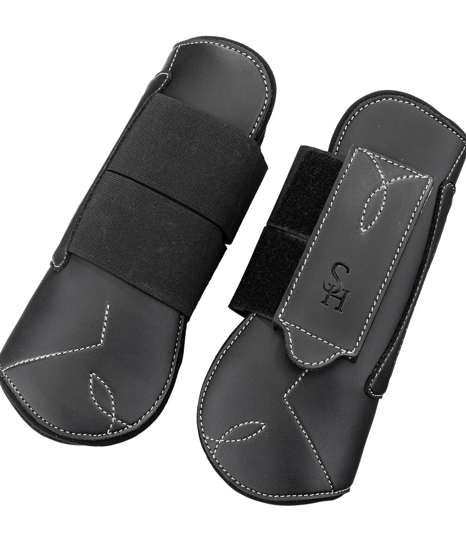Guêtres SHOWMASTER en matière synthétique résistante. Protection supplémentaire contre les chocs le long du tendon. Surpiqûres décoratives pour un style original. Pattes auto-agrippantes élastiques pour un ajustement parfait et un maintien sûr. Vendu par paire.