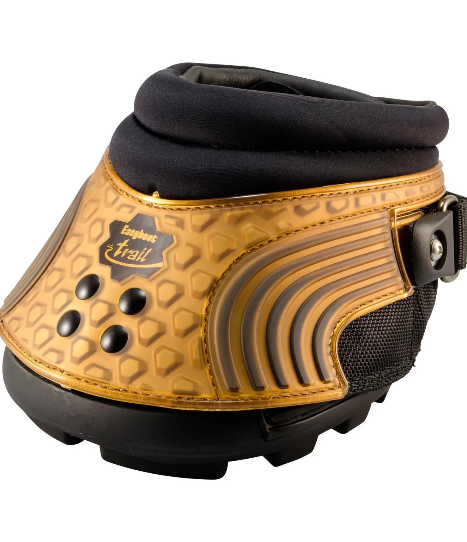 Inspirées des Easyboot Trail, ces hipposandales ont été améliorées sur les points suivants : sangle en nylon à l’arrière pour un meilleur maintien (peut être retirée/remplacée à l’aide de deux vis, et fixée aussi bien à droite qu’à gauche) et renforcement en PU de couleur bronze sur l’extérieur. Empiècement en caoutchouc-chloroprène à l’arrière pour un maintien maximal et un confort optimal. Léger rembourrage au niveau de la couronne, en caoutchouc-chloroprène à l’extérieur et en polyuréthane à l’intérieur. Fermeture par patte auto-agrippante lisse, pour éviter que la saleté ne reste incrustée. Semelle crantée en TPU comme sur l’Easyboot Trail. Mise en place facile. Vendue à l’unité.