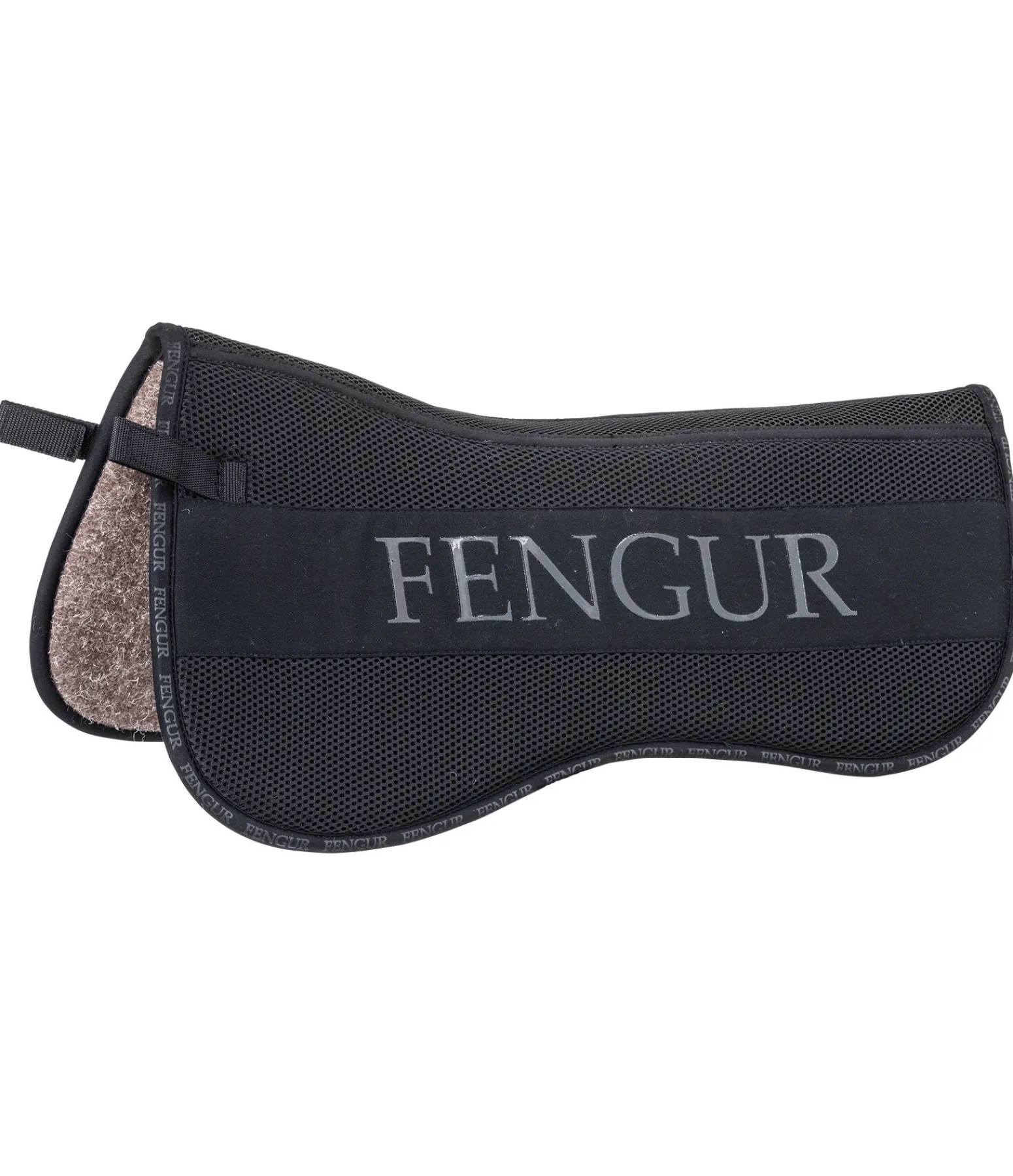 Amortisseur respirant et facile à entretenir avec dessous en feutre, surface supérieure en mesh et couche intermédiaire en mousse absorbant les chocs. Avec tissu mesh le long de la colonne vertébrale pour une circulation permanente de l’air. Les passants de sangle avec patte auto-agrippante et la marque en grip empêchent que la selle glisse. Surface supérieure 100 % polyester, dessous 100 % feutre. Longueur de dos 57 cm.