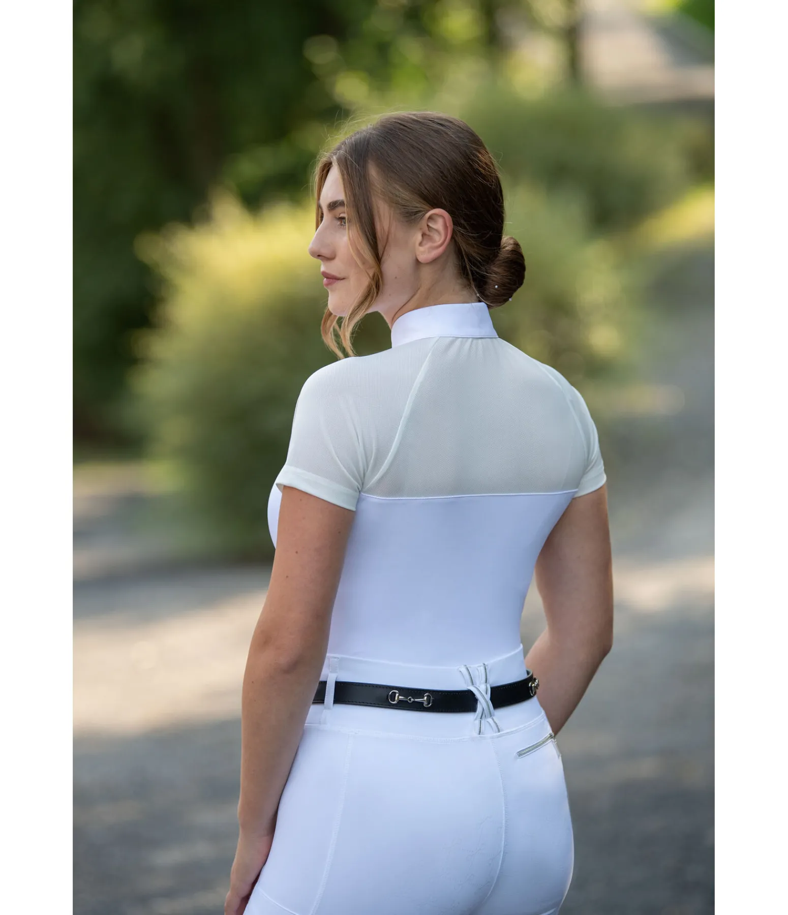 Body de concours extensible avec empiècements et manches en mesh. Col montant avec fermeture à glissière dissimulée. La fermeture par boutons-pression à l’avant évite les frottements et empêche que le vêtement glisse. 83 % polyester, 17 % élasthanne.