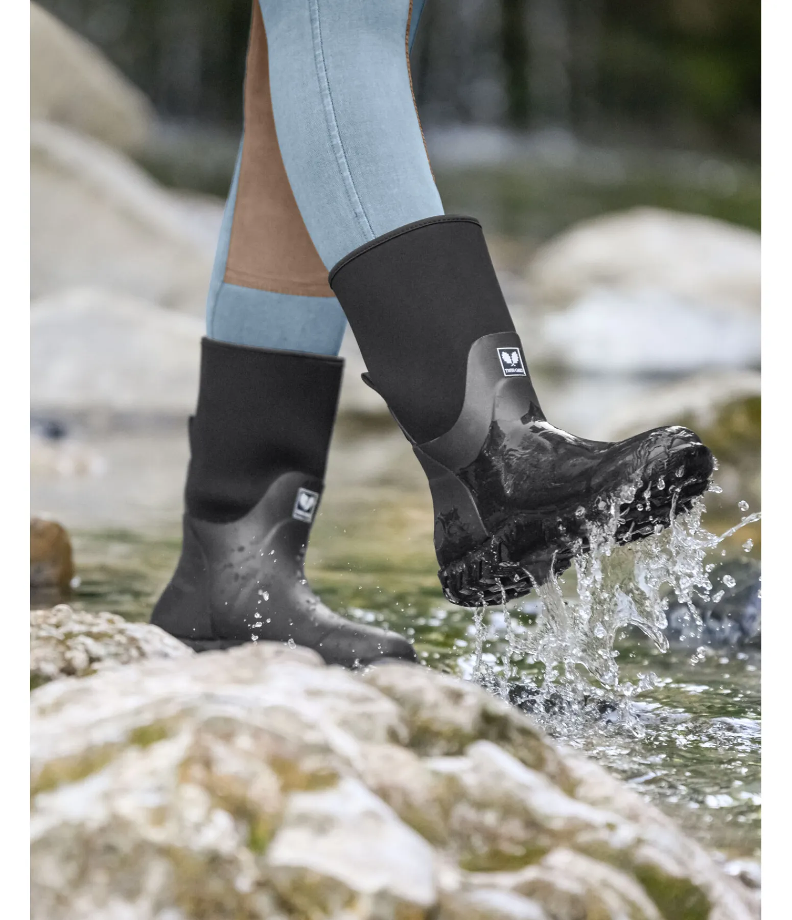 Bottes imperméables mi-hautes, idéales pour de longues promenades à pied avec votre cheval ou des randonnées équestres de plusieurs jours. Tige en caoutchouc chloroprène stretch qui s’adapte à la forme du mollet et permet d’empêcher l’eau de s’infiltrer dans la botte. Semelle crantée en caoutchouc robuste pour une adhérence optimale. Languette à l’arrière pour un enfilage facile.