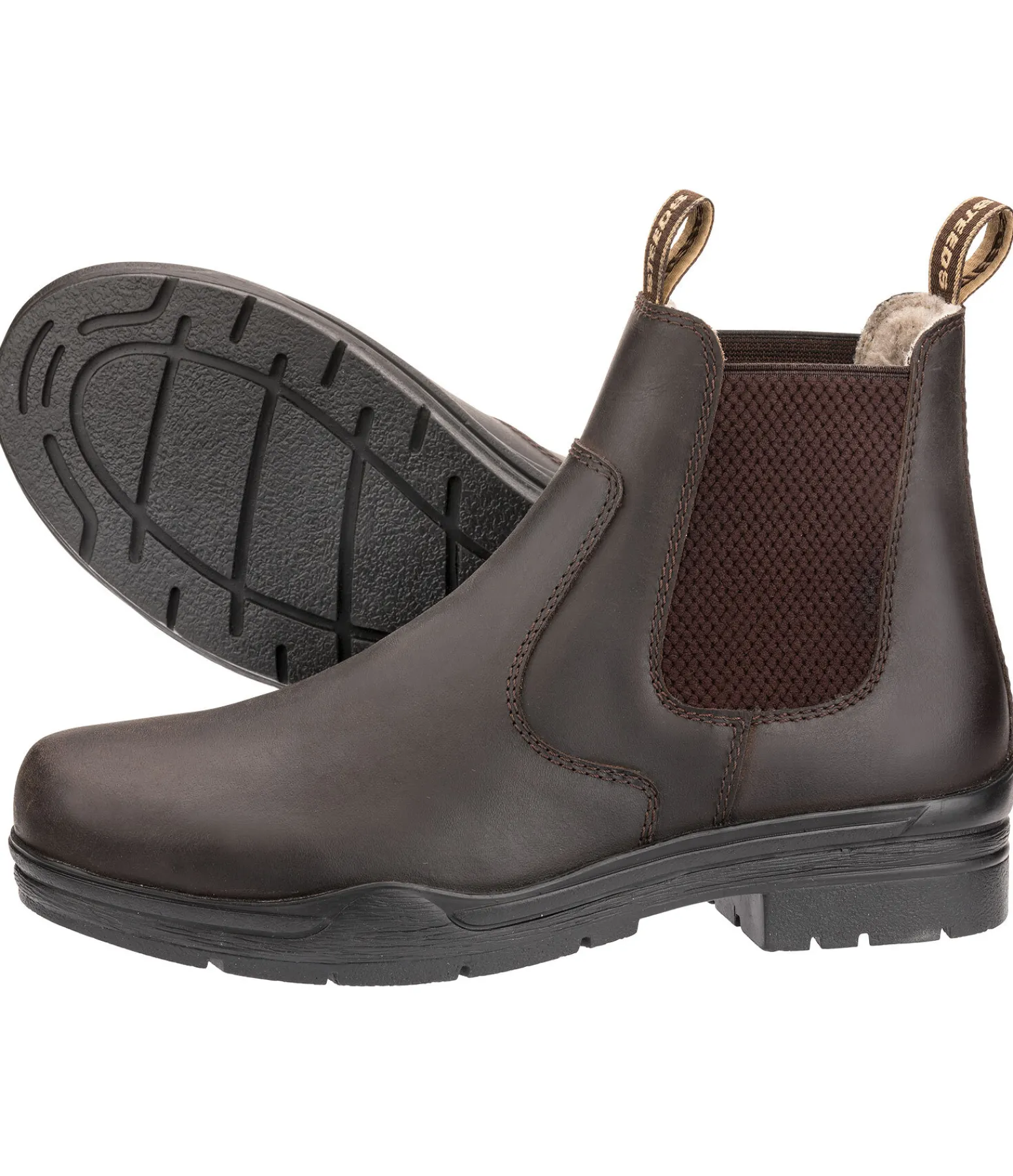 Bottines d’équitation en cuir gras huilé. Doublées de polaire chaude (100 % polyester). Soufflet élastiqué alvéolé de chaque côté de la bottine pour garantir un confort optimal. Nouvelle semelle crantée caoutchouc avec talon cavalier pour une adhérence parfaite sur les sols glissants.