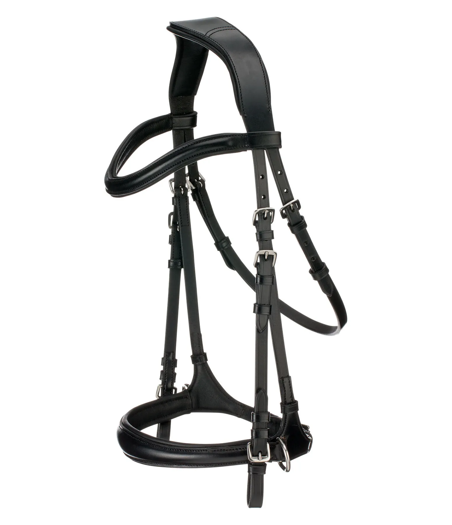Bridon polyvalent en cuir véritable pouvant être utilisé de plusieurs façons. Idéal pour la transition vers l’équitation sans mors. Muserolle, têtière et frontal vague anatomiques pour une meilleure répartition des pressions. Sous-gorges et attaches de mors amovibles. Bouclerie argentée. Sans rênes, sans mors.