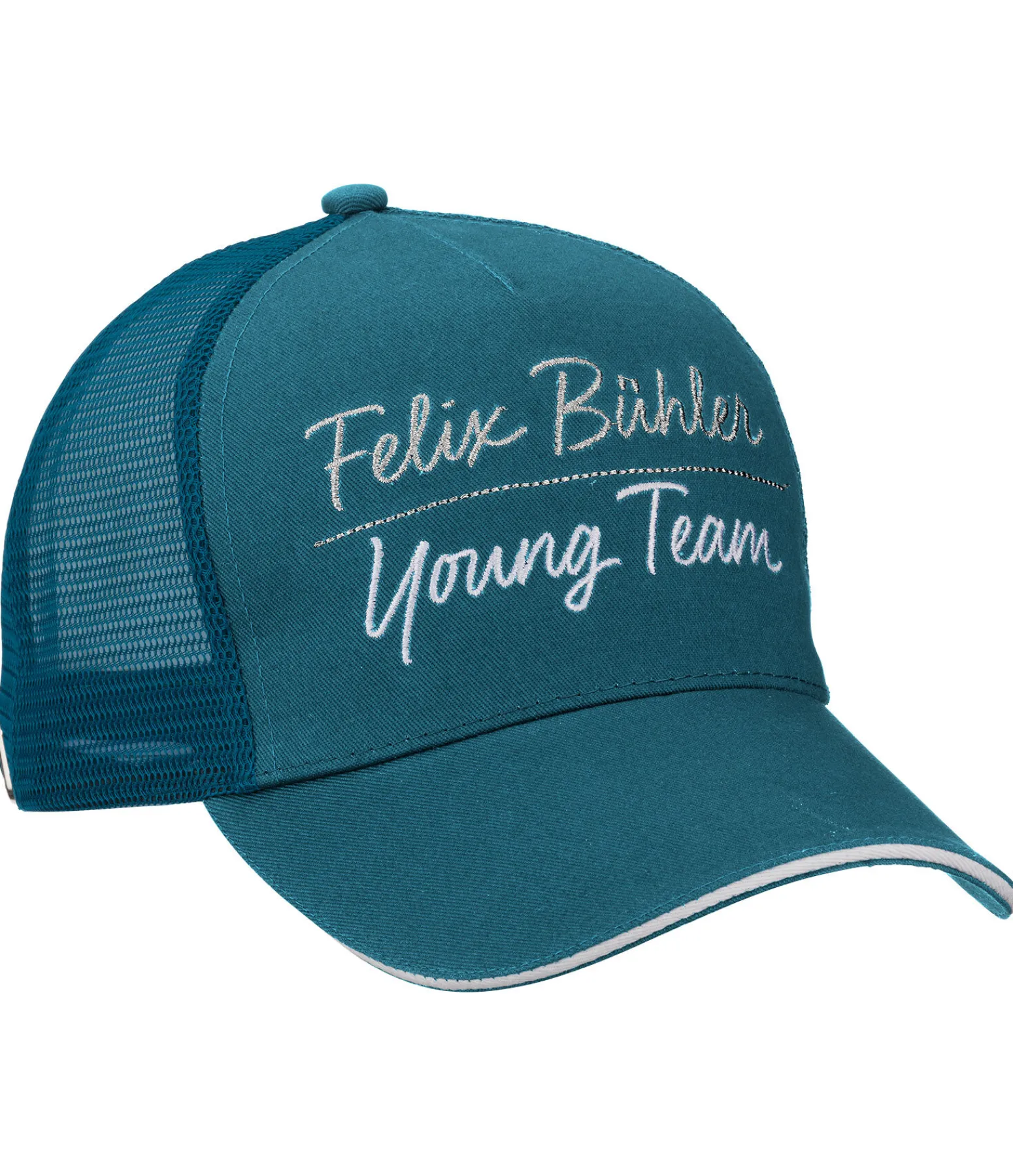 Casquette ajustable. Sportswear. Imprimé « Felix Bühler Young Team » brodé à l’avant. Insert en Mesh à l’arrière pour une circulation de l’air optimale. Parfait pour les chaudes journées d’été à l’écurie. 100 % coton.