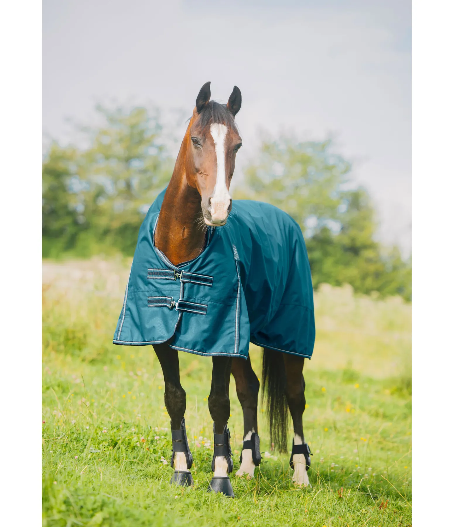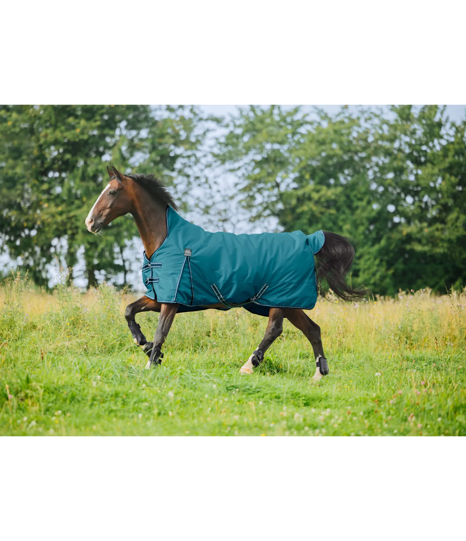 Chemise d’extérieur Highneck technique. Matière Ripstop (600 deniers) et imperméable (3.000 mm). La coupe Highneck permet d’éviter les pressions au niveau du garrot et empêche l’infiltration d’eau au niveau des épaules pour une protection efficace en cas de forte averse. Plis d’aisance pour une liberté de mouvement optimale. Double fermeture de poitrail avec crochets en T et patte auto-agrippante supplémentaire. Sursangles croisées réglables et rabat de queue. Anneaux permettant la fixation de courroies de cuisses (non incluses). Courroie de queue réglable incluse. Doublure lisse protégeant la robe. 100 % polyester.