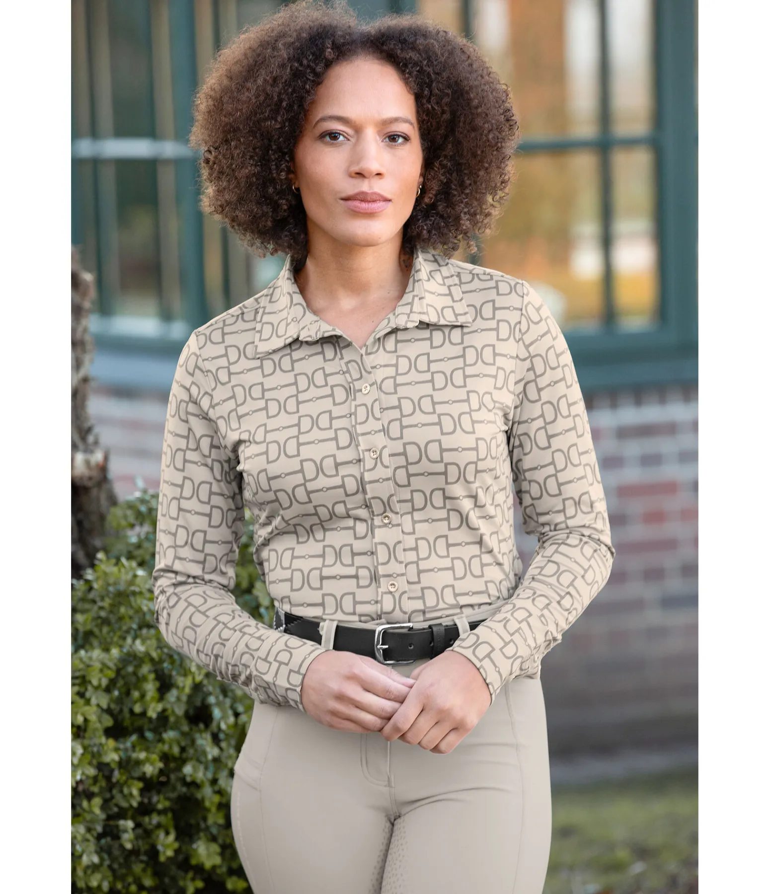 Chemise technique chic. Matière respirante à séchage rapide. Motif d’inspiration équestre all-over. Patte de boutonnage. Poignets boutonnés. 85 % polyester, 15 % élasthanne.
