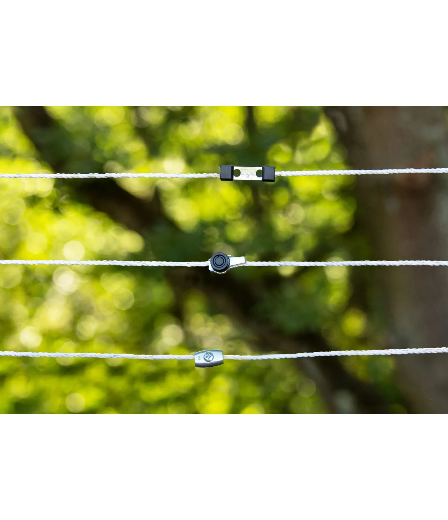 Pour une connexion rapide, aisée et efficace de cordons, cordelettes et rubans jusqu’à 10 mm, sur des isolateurs et des poignées de portail. Zingués. Vendus par lot de 4.
