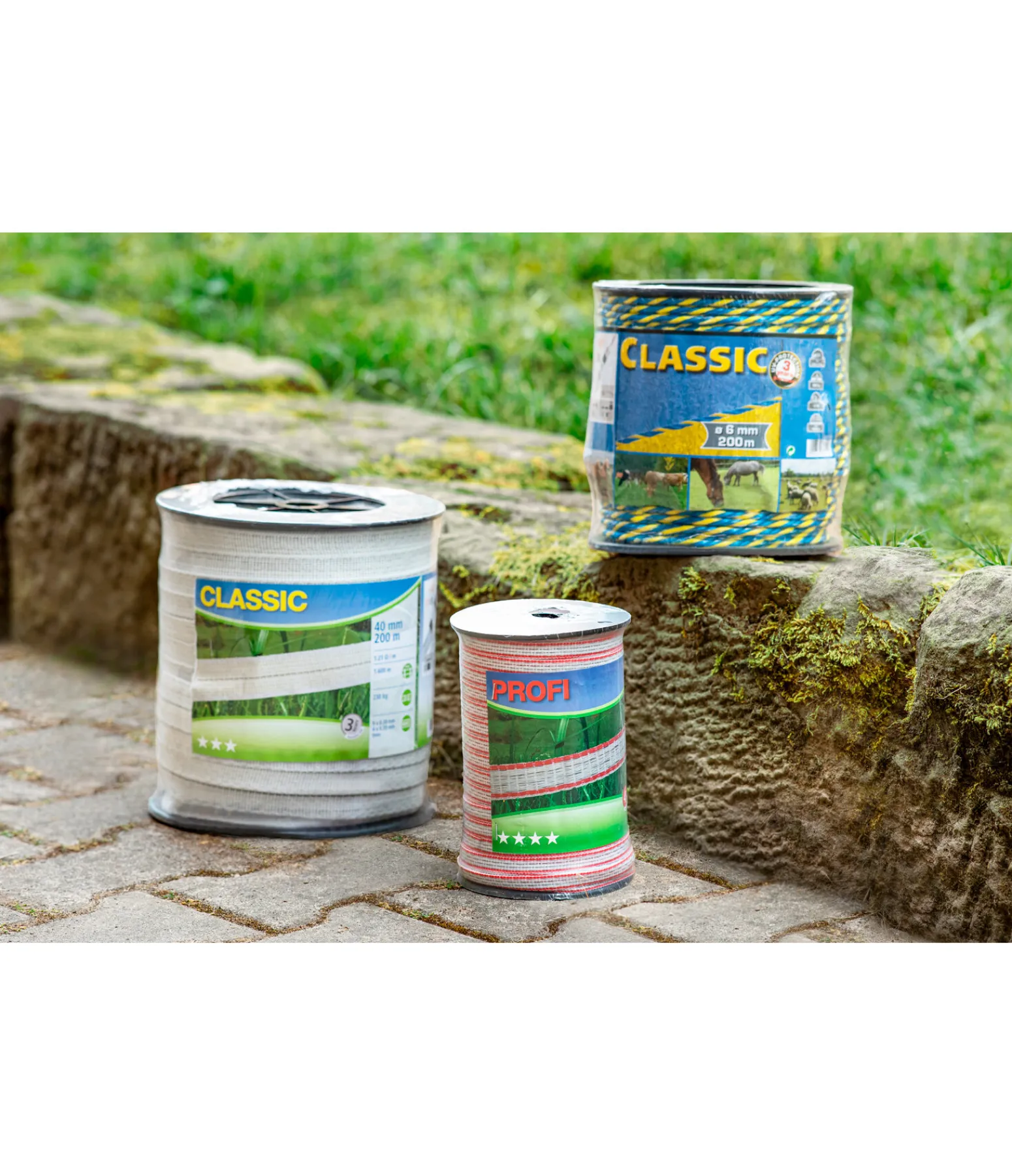 6×0,2 mm Conducteur Niro. Résistance 3,87 Ohm/m. Longueur max. de la clôture conseillée : 500 m. Plastique issu de matériaux recyclés respectant des standards de qualité.