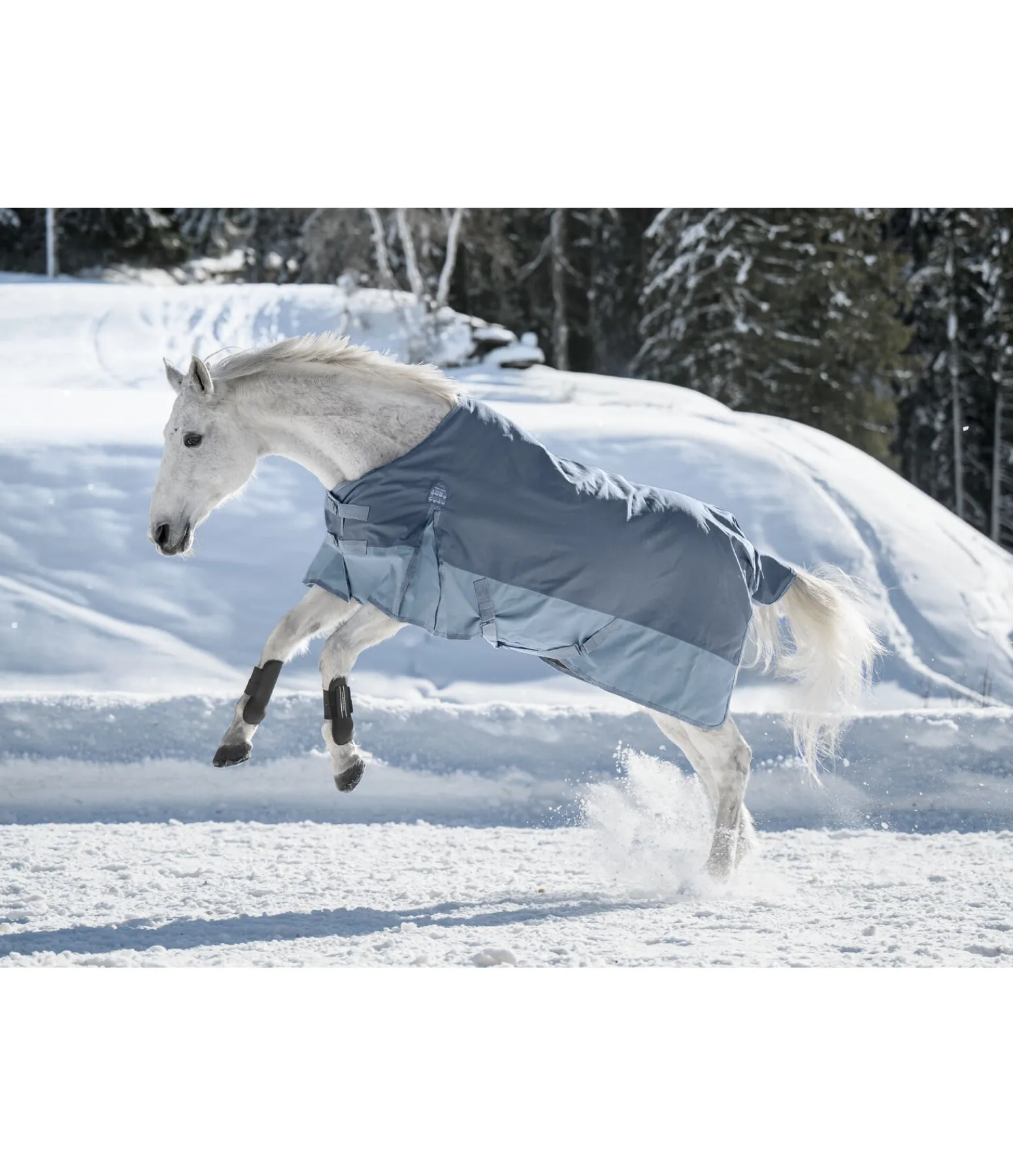Couverture d’extérieur solide, imperméable (4 000 mm) en matière technique résistante Ripstop 1 000 deniers avec grammage 150 g. Grands plis d’aisance pour une liberté de mouvement optimale. Bandes de couleur assortie le long des flancs. Doublure lisse protégeant la robe. Double fermeture de poitrail avec crochets en T, sursangles croisées et courroie de queue réglable. Anneaux permettant de fixer des courroies de cuisses (non incluses). 100 % polyester.