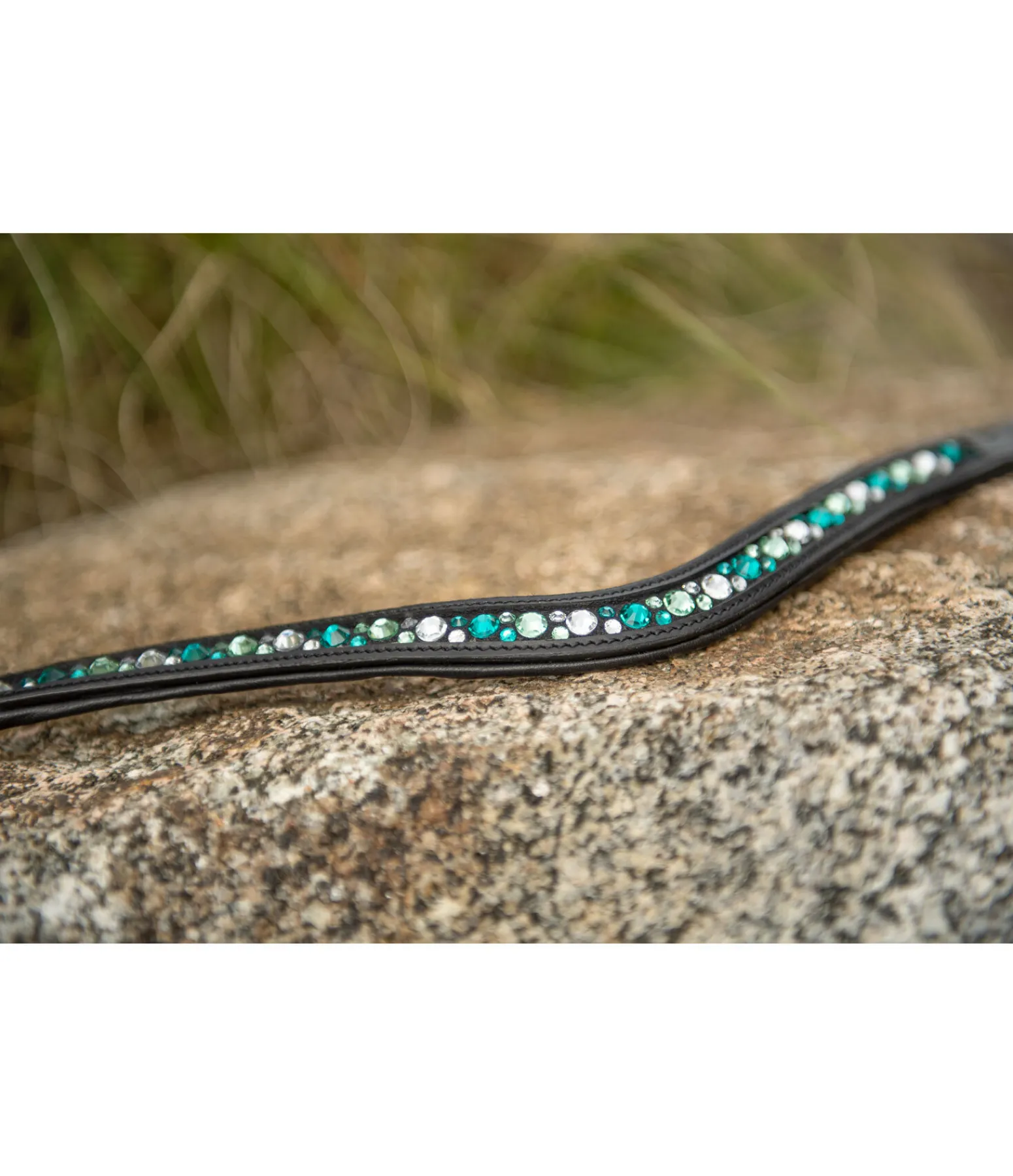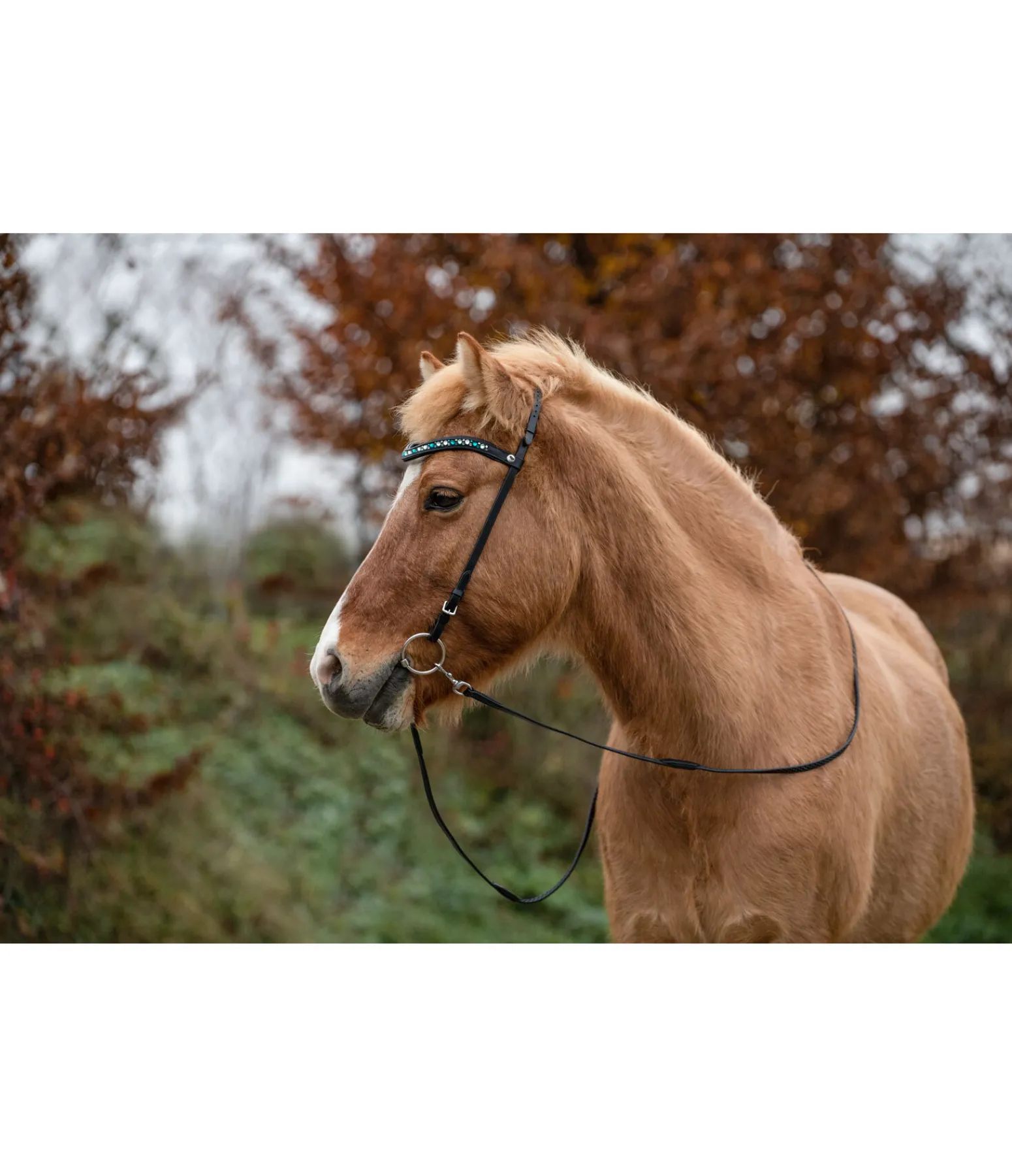 Frontal vague avec petits strass. Boutons-pression sur le côté pour une manipulation rapide et facile. Cuir véritable.