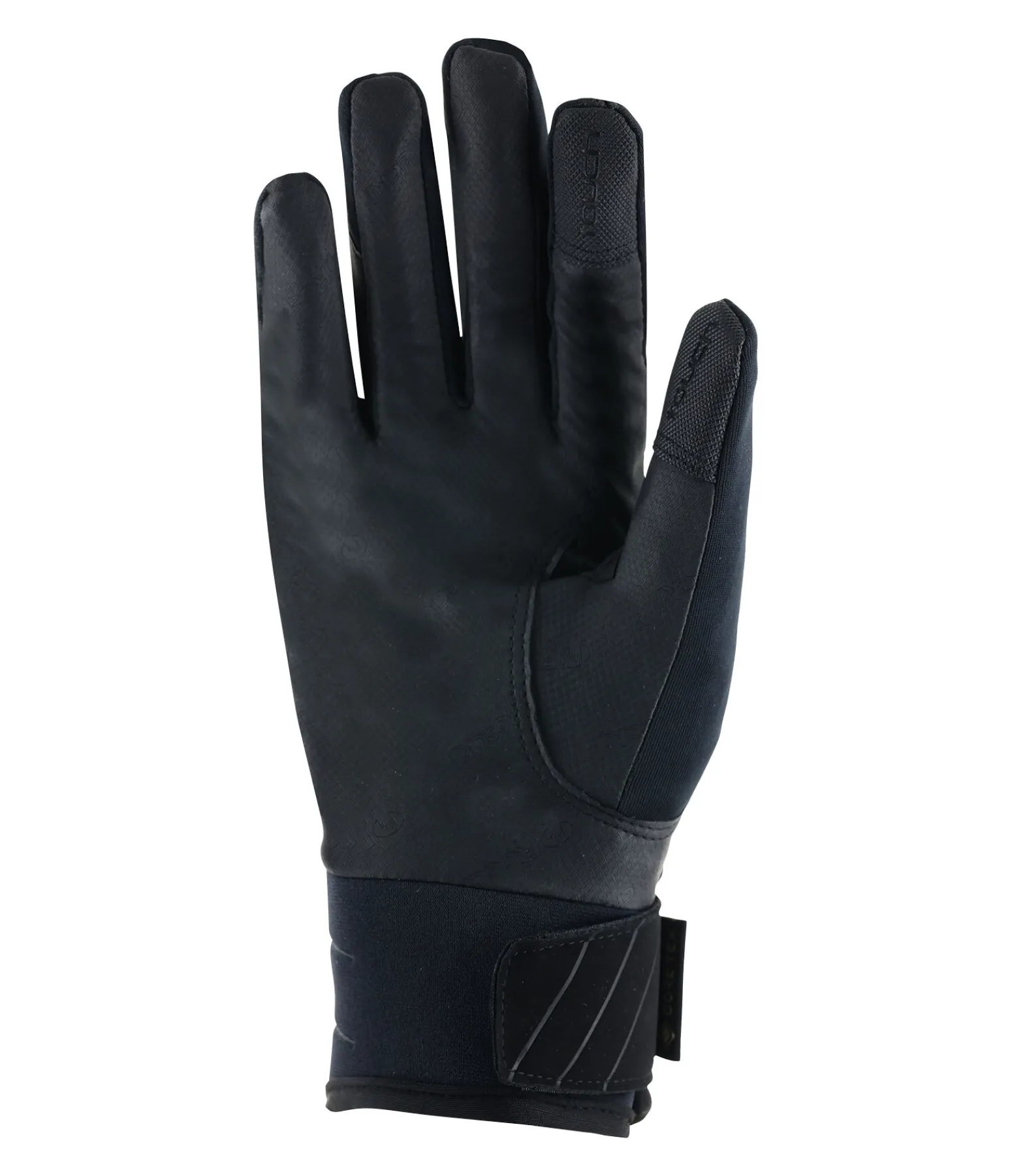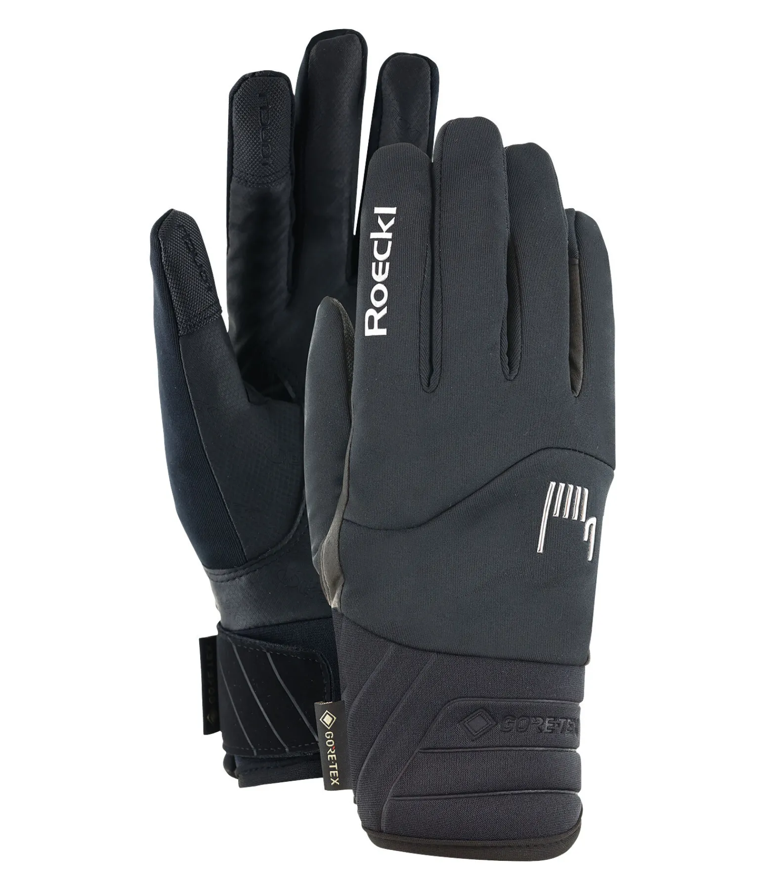 Efficacement imperméables, agréablement chauds, extrêmement confortables – les gants d’équitation hiver WOLDA GTX répondent à toutes les attentes des cavaliers et cavalières ainsi que des fans de chevaux. Grâce au ROECK-PROOF® ECO Denali composé à 87 % de polyester recyclé sur le dessus de la main, le vent froid et l’humidité n’ont aucune chance. De plus, ce tissu laminé 3 couches est très respirant et extensible, ce qui garantit le confort de port et une liberté de mouvement maximale pour les doigts et la main. Et comme il est molletonné à l’intérieur, il est aussi doux et chaud que la polaire. Une membrane respirante GORE-TEX sans PFAS en polyéthylène expansé (ePE) offre une protection supplémentaire contre le vent et les intempéries. Elle est légère et fine et, de plus, certifiée bluesign® et STANDARD 100 by OEKO-TEX®. La haute performance thermique des WOLDA GTX est assurée par l’isolation lavalan® pro, un garnissage en fibres résistantes, efficacement thermorégulatrices – et respectueux des animaux, car sans mulesing – à base de laine vierge et de fibres de maïs (pour retracer l’origine, scannez le QR code figurant sur l’étiquette). Elle neutralise également les odeurs et offre une bonne adhérence. À propos d’adhérence : le MICRO-AIR doux et robuste, micro-perforé, est non seulement léger et confortable à porter, mais il permet également une bonne adhérence de la main sur les rênes pour une parfaite sensibilité. Que dire de plus ? La doublure Eco est recyclée et le long poignet en néoprène, qui s’ajuste parfaitement grâce à la patte auto-agrippante, disparaît facilement sous la manche de la veste. Les gants sont compatibles écran tactile, ce qui permet de prendre des photos, de taper des messages ou de répondre à des appels. Les WOLDA GTX sont disponibles en noir classique, rehaussé du chic logo métallique en relief Roeckl Sports. Ne contient pas de cuir.