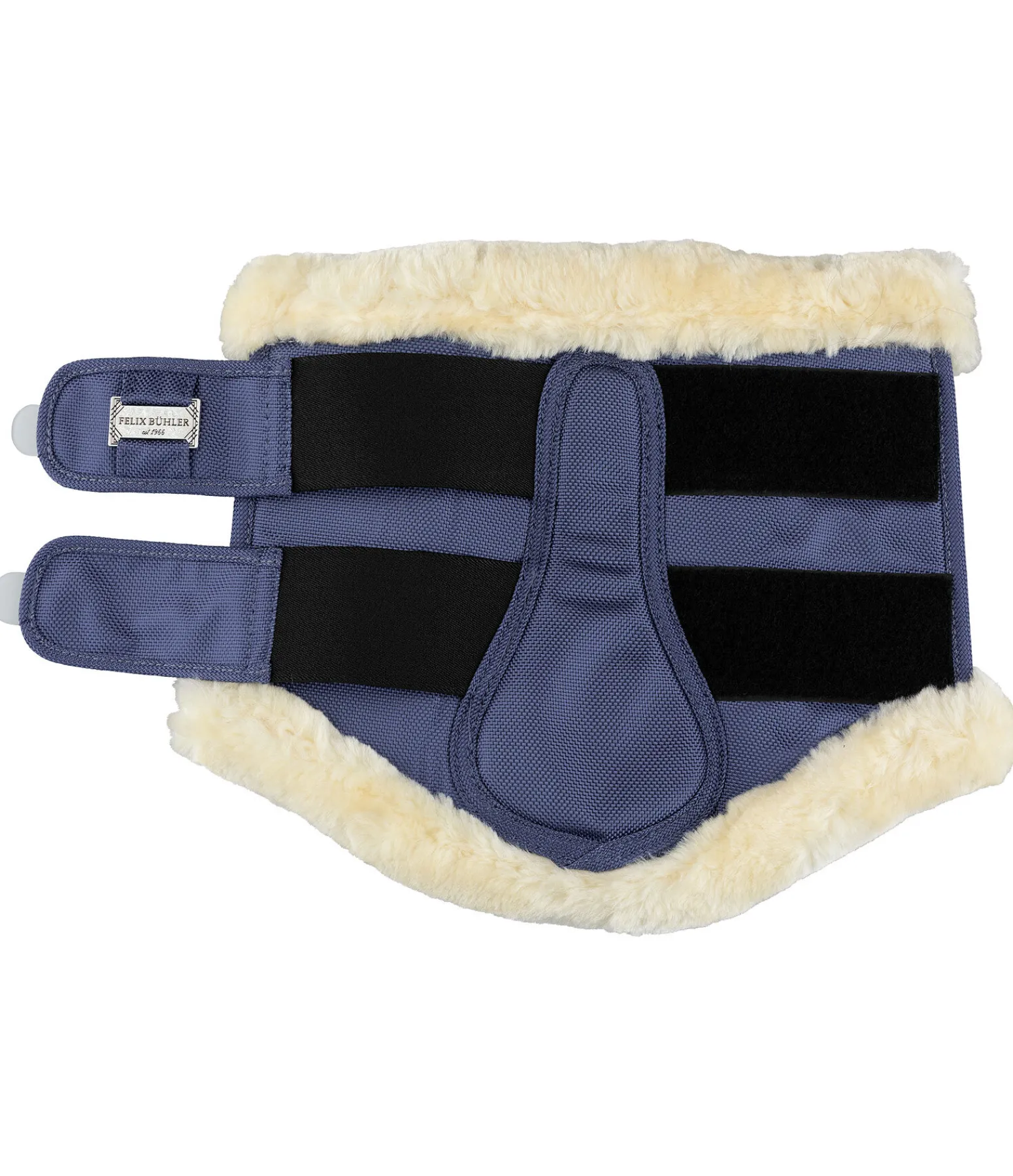 Élégantes guêtres de dressage avec bordure en polaire Teddy douce. Doublure moelleuse en caoutchouc chloroprène pour une protection optimale contre les impacts. Revêtement anti-salissures en matière résistante 600 deniers. Forme anatomique, pattes auto-agrippantes avec empiècements élastiques pour un ajustement parfait. Plaque métallique avec logo Felix Bühler. Doublure 100 % caoutchouc chloroprène, revêtement 100 % polyester. Vendues par paire.