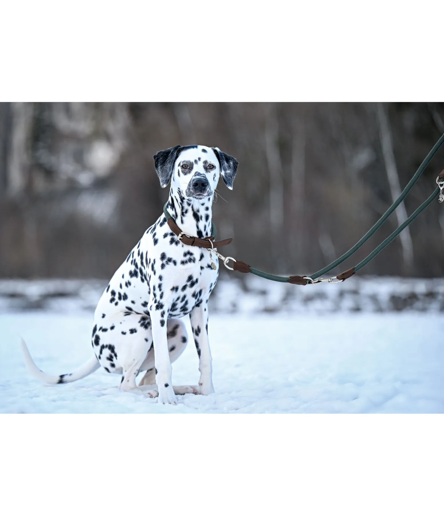 Elégante laisse en polypropylène doux avec des extrémités en cuir fin huilé. Trois possibilités d’attache. Avec un imprimé patte subtil. Longueur 200 cm. Convient pour les grands chiens.