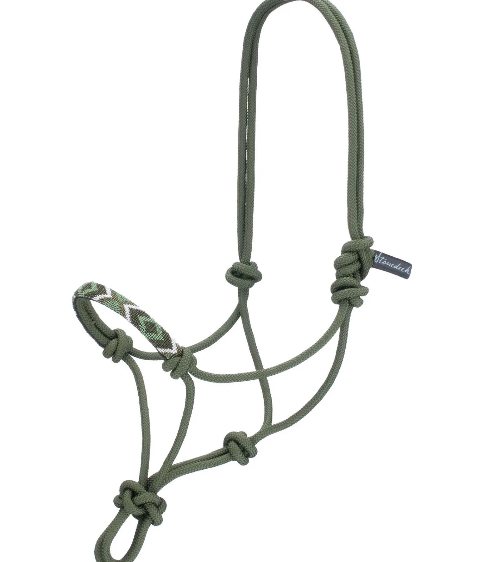 Beau licol à noeuds robuste. Avec doublure à la têtière et muserolle. Orné de perles formant un superbe motif. Épaisseur des cordes 8 mm. 100 % polypropylène.