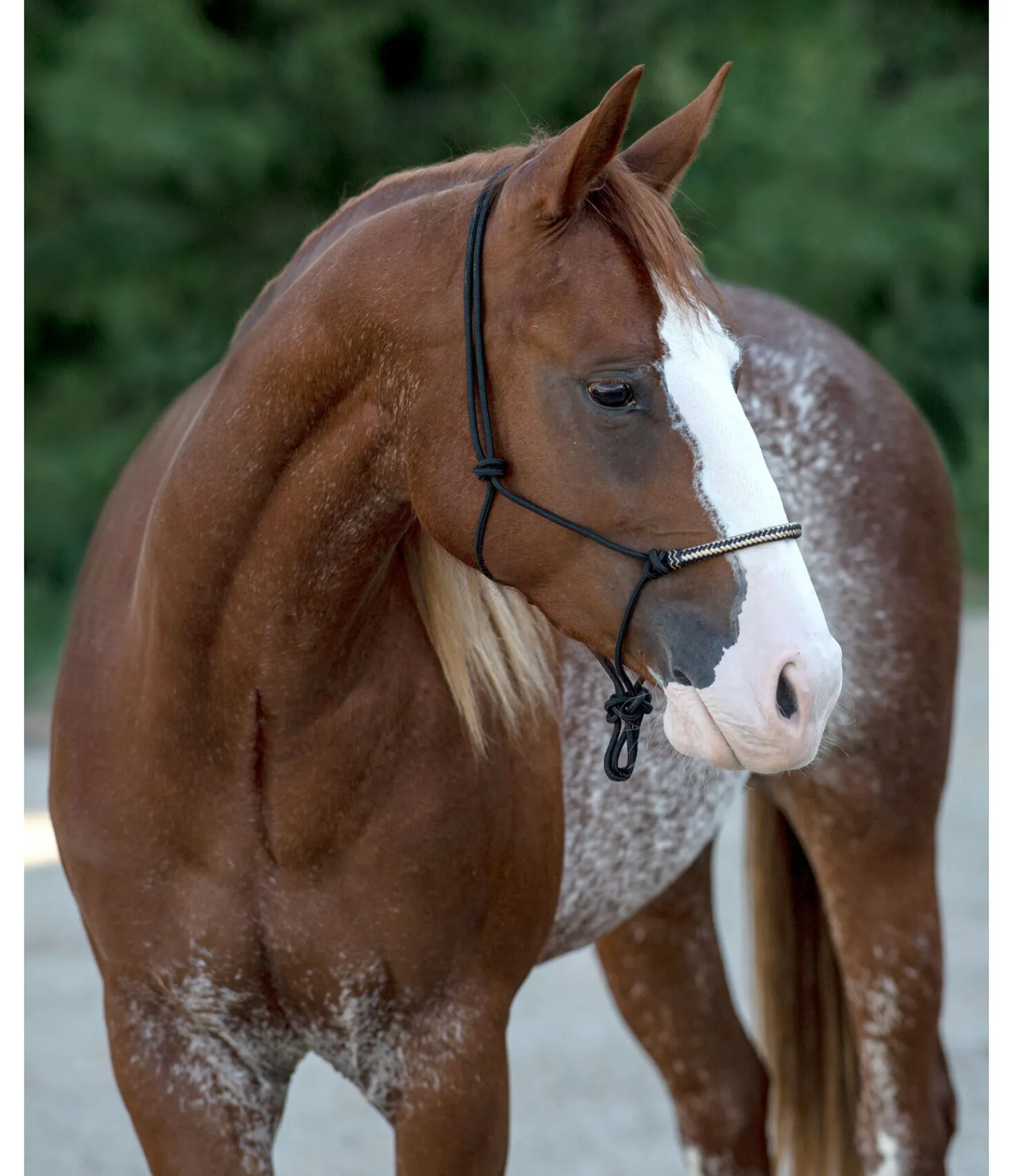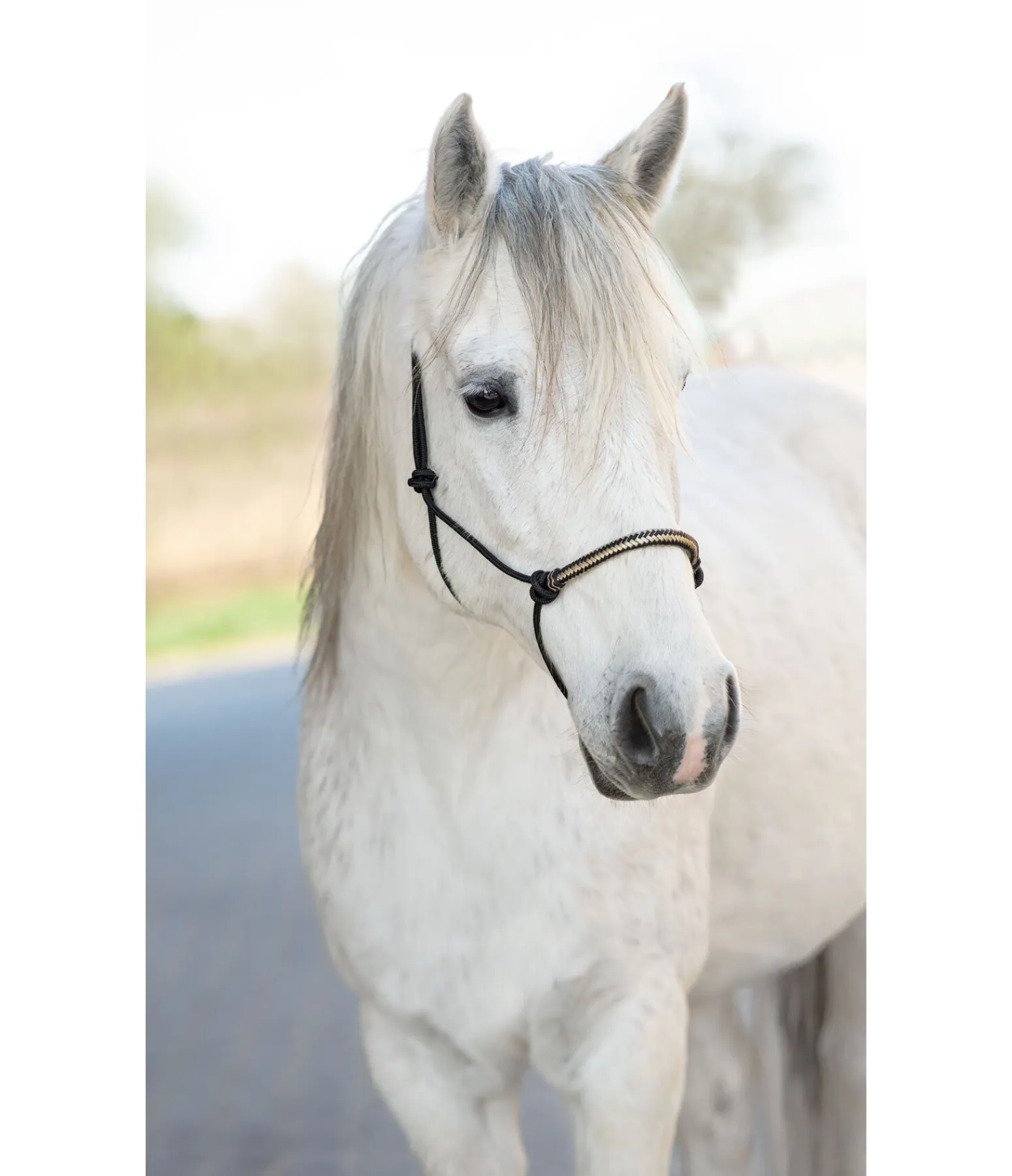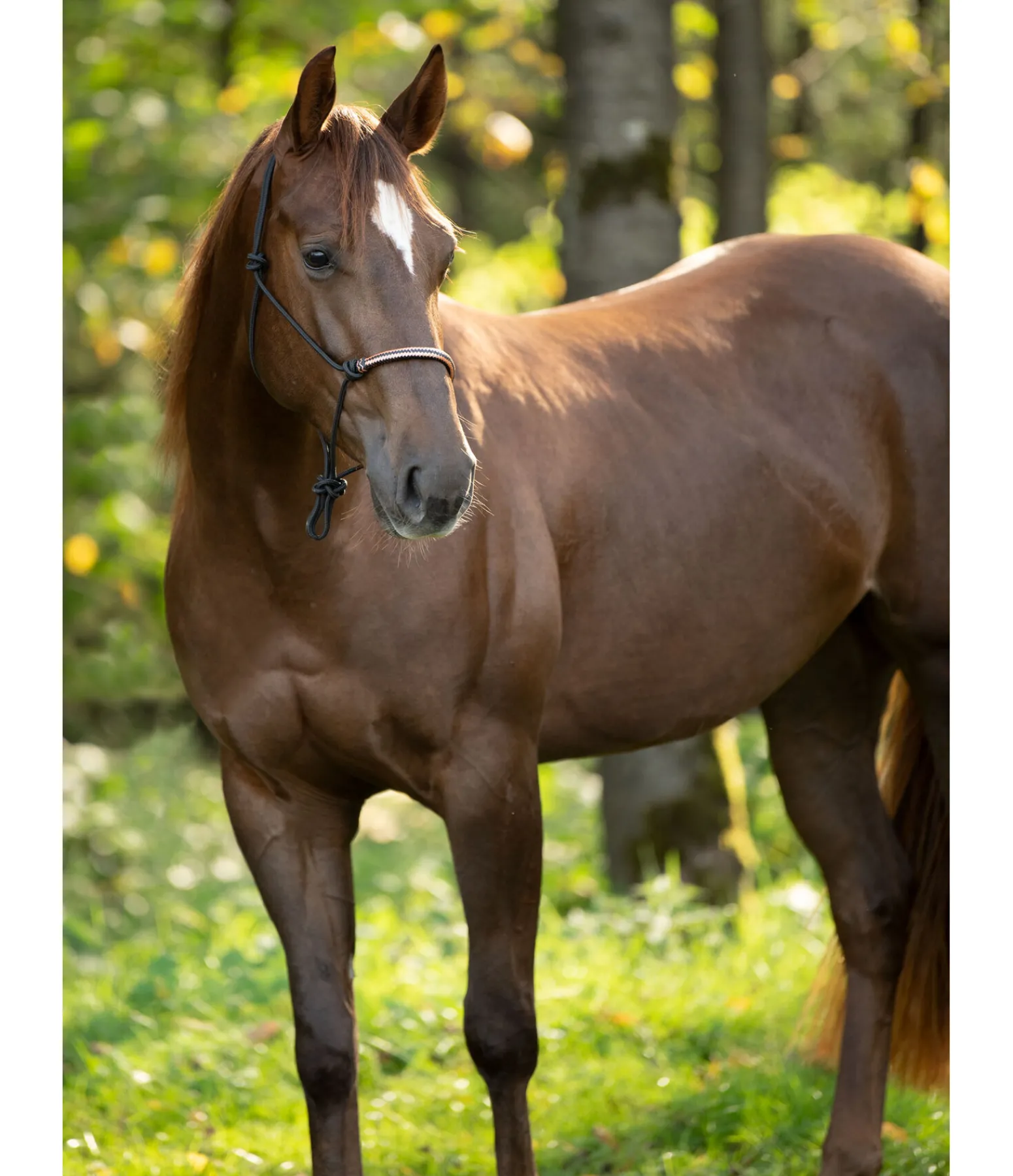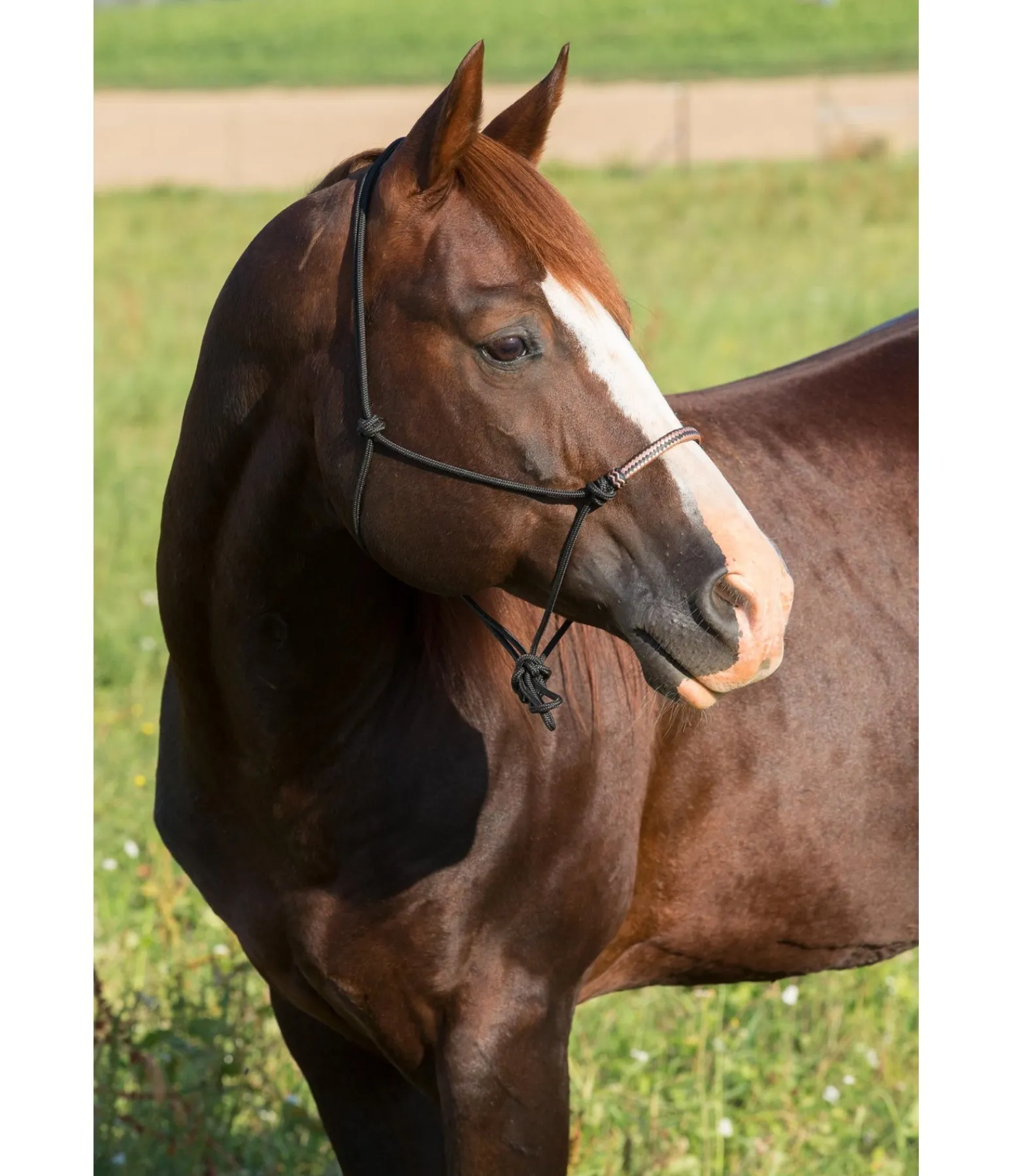 Licol à noeuds haut de gamme. Avec muserolle de couleur contrastante en cuir brut. Diamètre 6 mm.