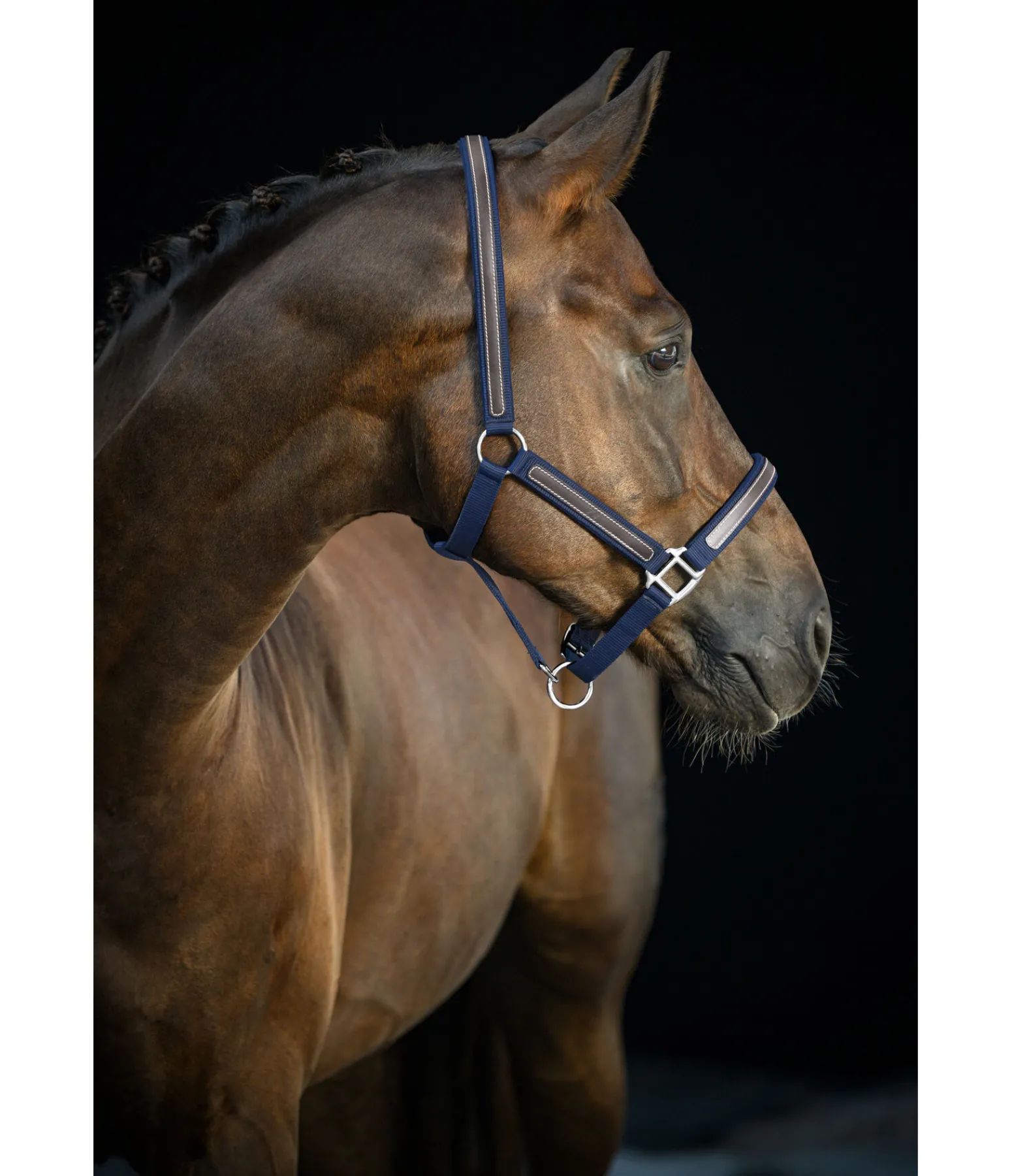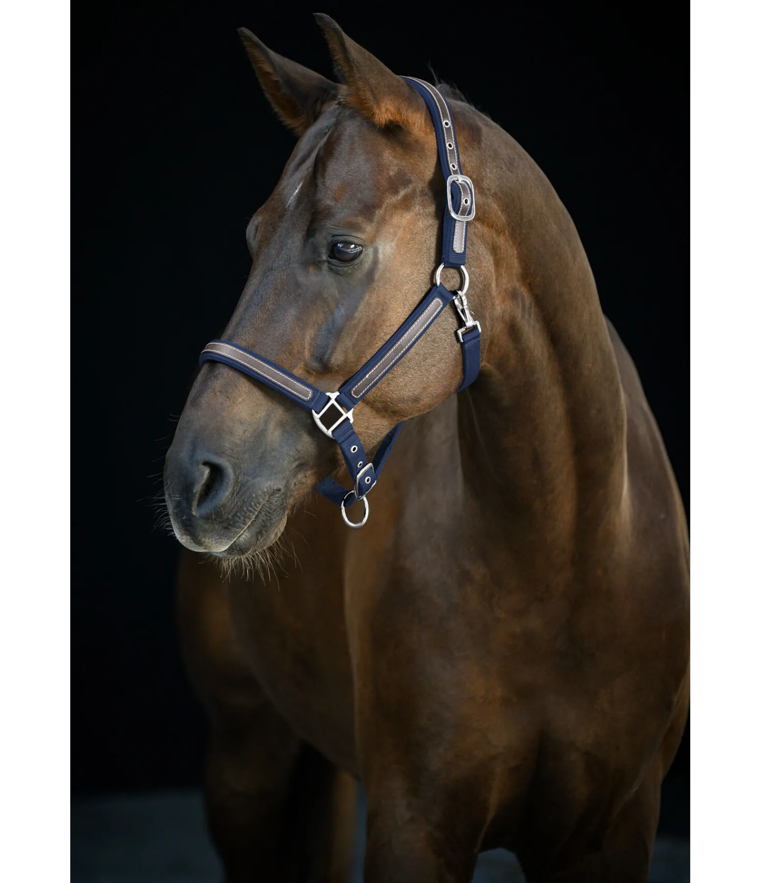 Licol de grande qualité avec finitions en cuir pour un look particulièrement soigné. Têtière et muserolle avec doublure. Têtière et muserolle réglables. Bouclerie argentée. Licol 100 % polypropylène, doublure 100 % caoutchouc-chloroprène.