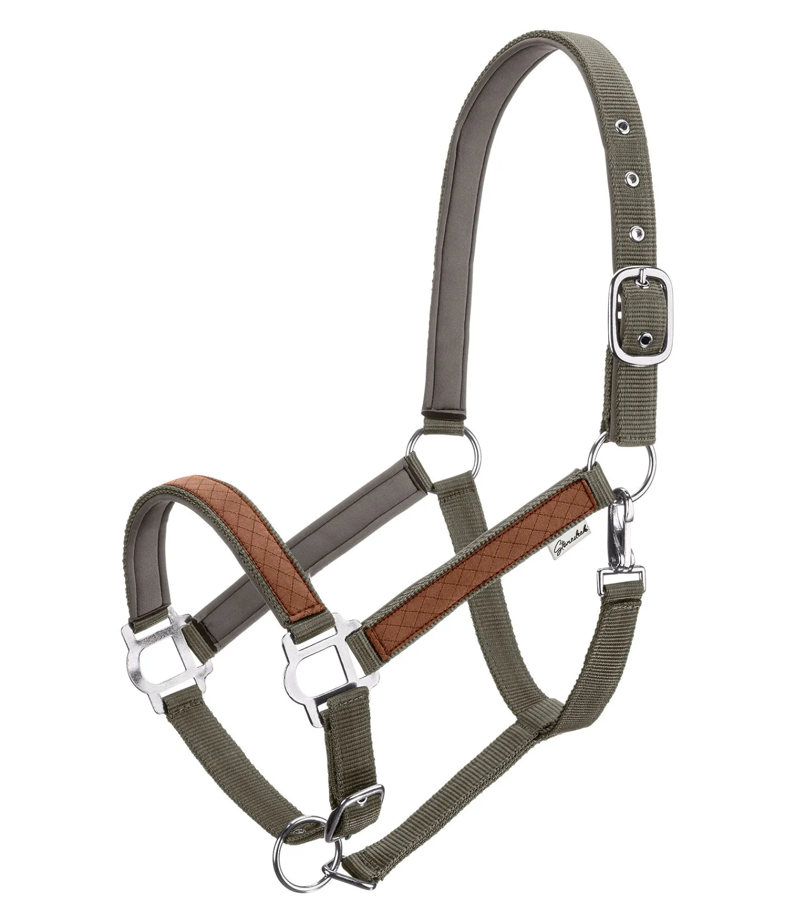 Licol chic dans un look western avec montants et muserolle ornés de suédine. Têtière, montants et muserolle avec doublure moelleuse en caoutchouc chloroprène. Têtière et muserolle réglables. Mousquetons clippers. Boucles argentées. Licol 50 % polypropylène, 50 % polyester, doublure 100 % caoutchouc chloroprène.