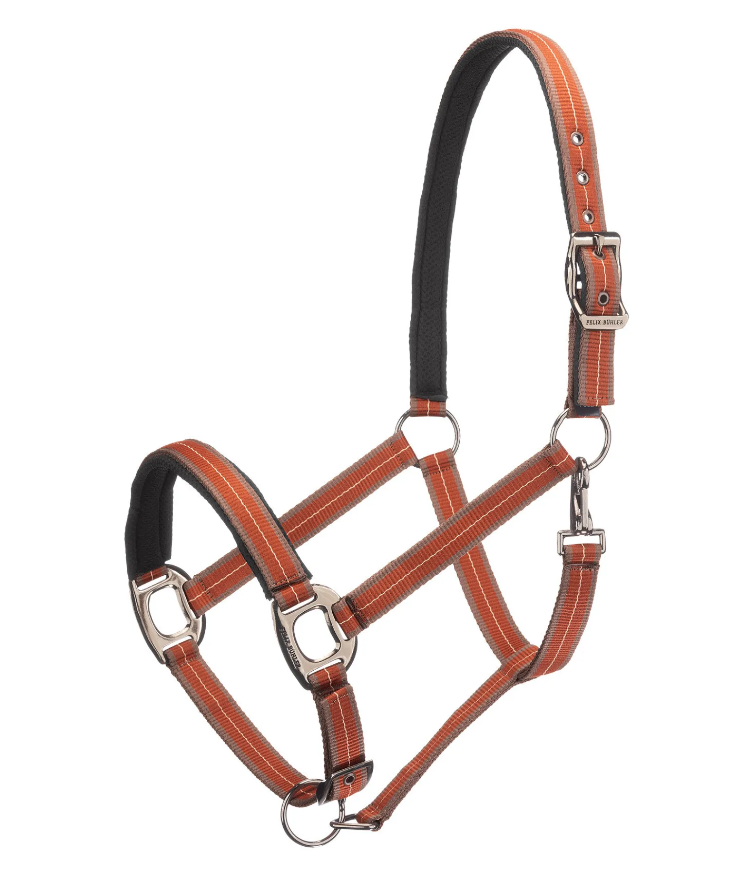 Licol rayé dans un look sportif avec doublure respirante en mesh sur la têtière et la muserolle. Muserolle et têtière réglables. Licol 100 % polypropylène.