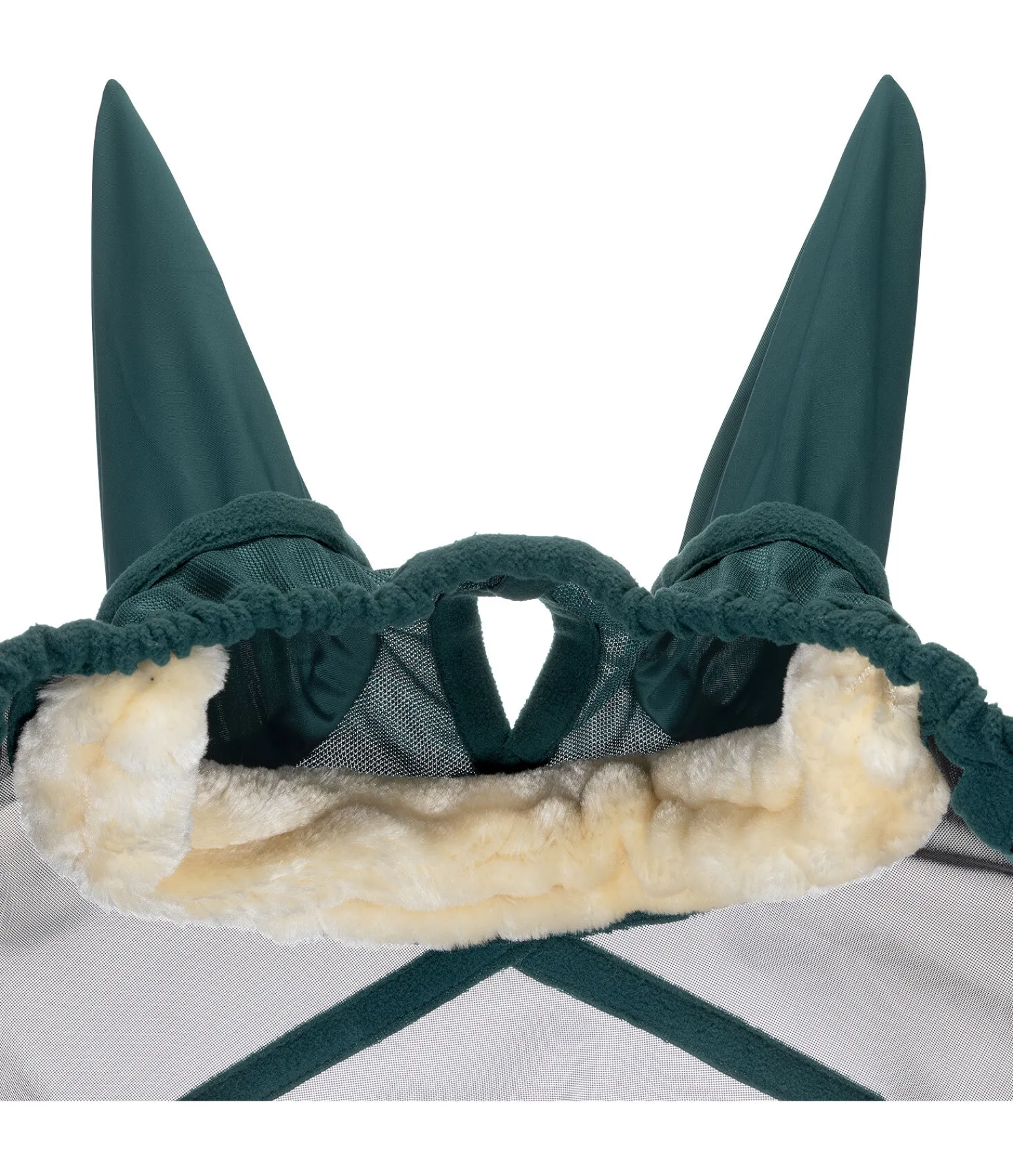 Masque anti-mouches et anti-salissures. Idéal pour les chevaux sensibles. Filet à maille serrée avec coutures renforcées. Bloque au moins 50 % des rayons UV tout en offrant une bonne visibilité. Filet conçu dans une matière extensible absorbant l’humidité pour protéger les oreilles. Efficace contre les moustiques et autres insectes. Doublure en polaire Teddy douce au niveau du front pour un confort optimal et bordure en polaire autour du chanfrein pour éviter les irritations dues aux frottements, élastiqué autour de l’encolure pour un ajustement parfait. Avec passage de toupet et double patte auto-agrippante pour un maintien sûr. 100 % polyester.