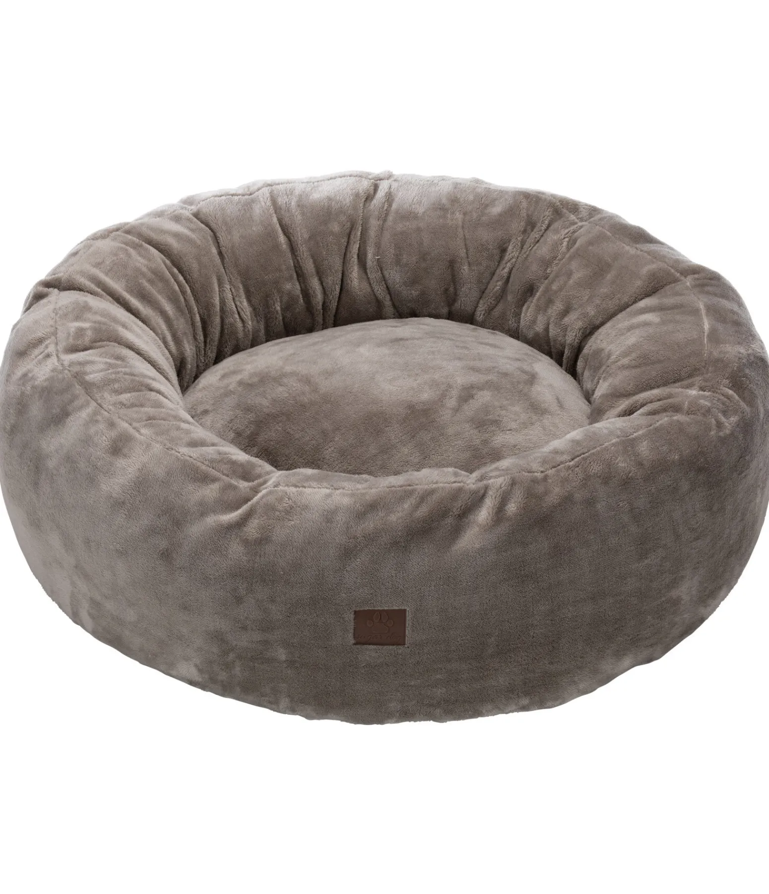 Panier confortable en polaire Teddy douce en forme de donut pour que votre chien fasse de beaux rêves. La forme arrondie avec bords hauts est parfaite pour s’y blottir, reposer sa tête et apporter une sensation de sécurité aux chiens peureux. Coussin amovible. Housse du panier et du coussin amovibles grâce à des fermetures à glissière et lavables en machine à 30°. Dessous antidérapant. 100 % polyester.