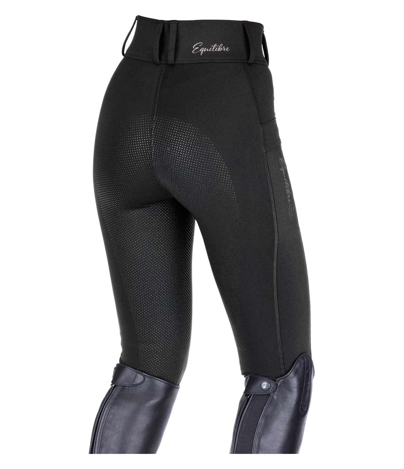 Pantalon d’équitation à fond intégral grip en silicone. Sportswear. Matière stretch respirante et extensible dans 4 directions. Poches latérales pour téléphone portable avec logo imprimé. Bas de jambe extensible. Ceinture large avec passants. Logo scintillant à l’arrière. Disponible dans des tailles intermédiaires. 89 % polyester, 11 % élasthanne.