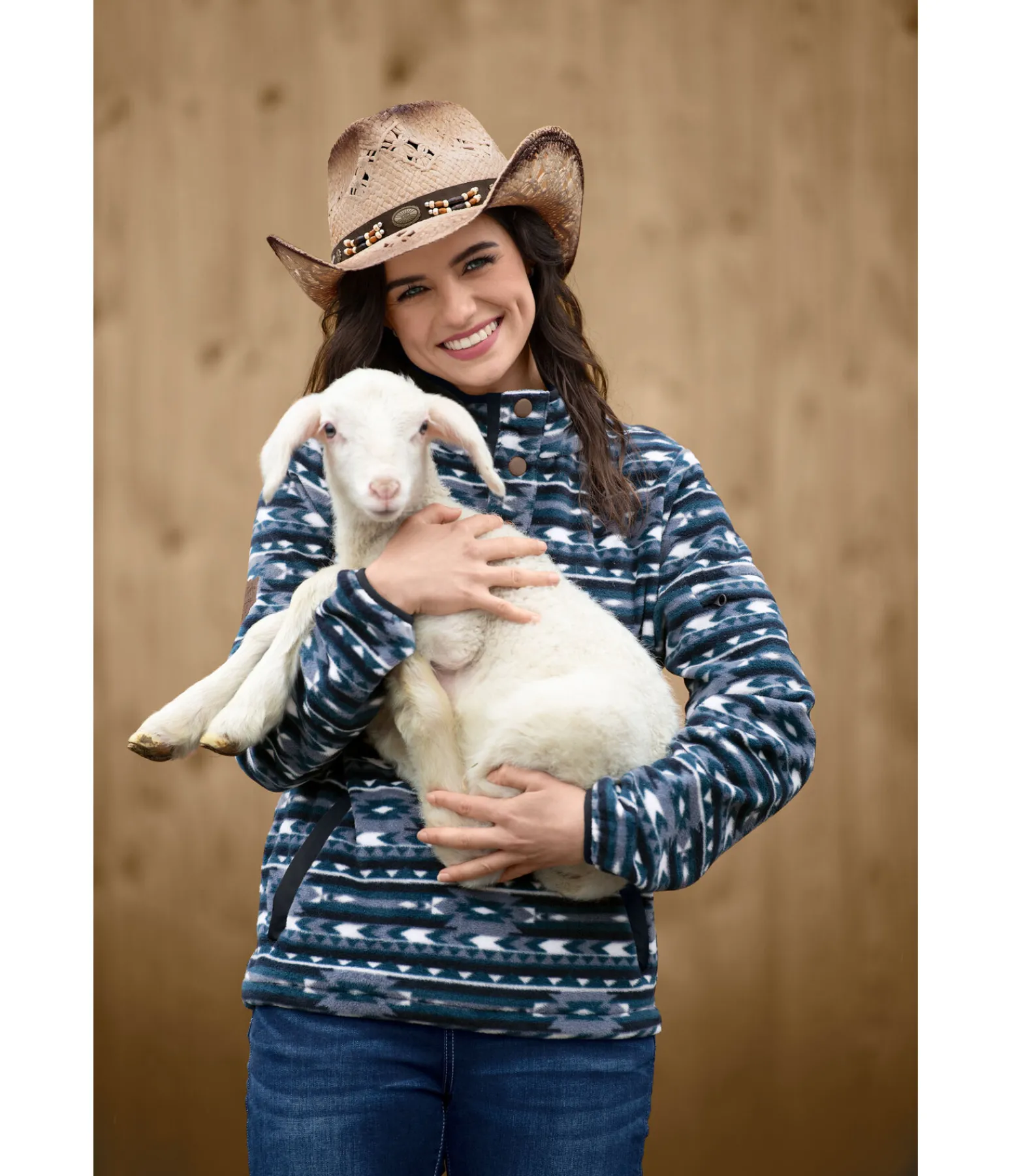 Pull polaire avec imprimé ikat et détails en matière synthétique. Col montant. Poche kangourou zippée. Poche avec fermeture à glissière sur la manche. Ourlet élastiqué. Matière respirante. 100 % polyester.