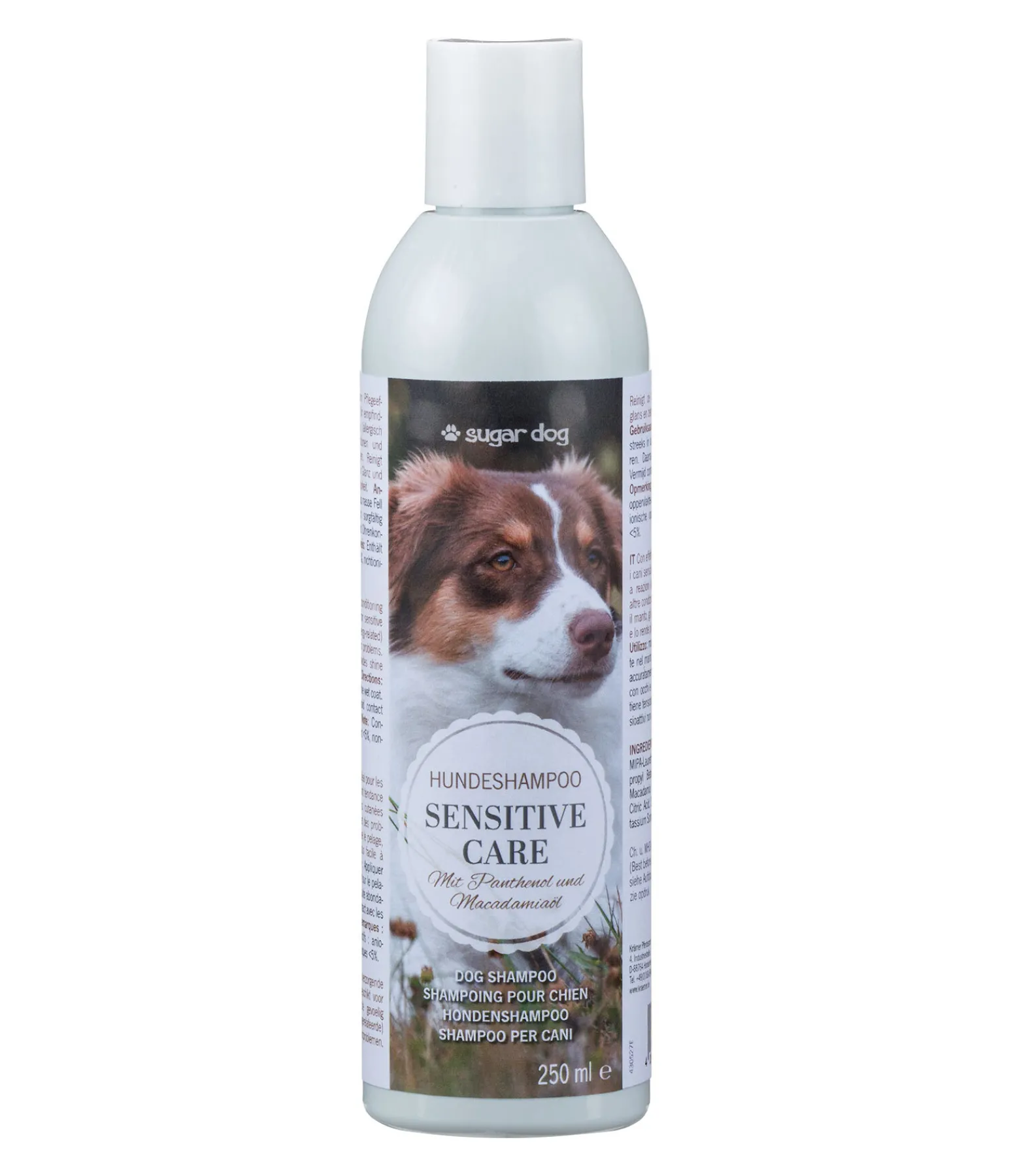 Grâce au panthénol et à l’huile de macadamia qu’il contient, le shampoing pour chien sugar dog Sensitive Care est idéal pour les peaux sensibles et à tendance allergique. Sans colorant ni parfum, il laisse une odeur agréable et discrète grâce aux ingrédients naturels. Soin relipidant. Éco-friendly grâce à la conception du flacon en plastique recyclé. Contenance 250 ml.