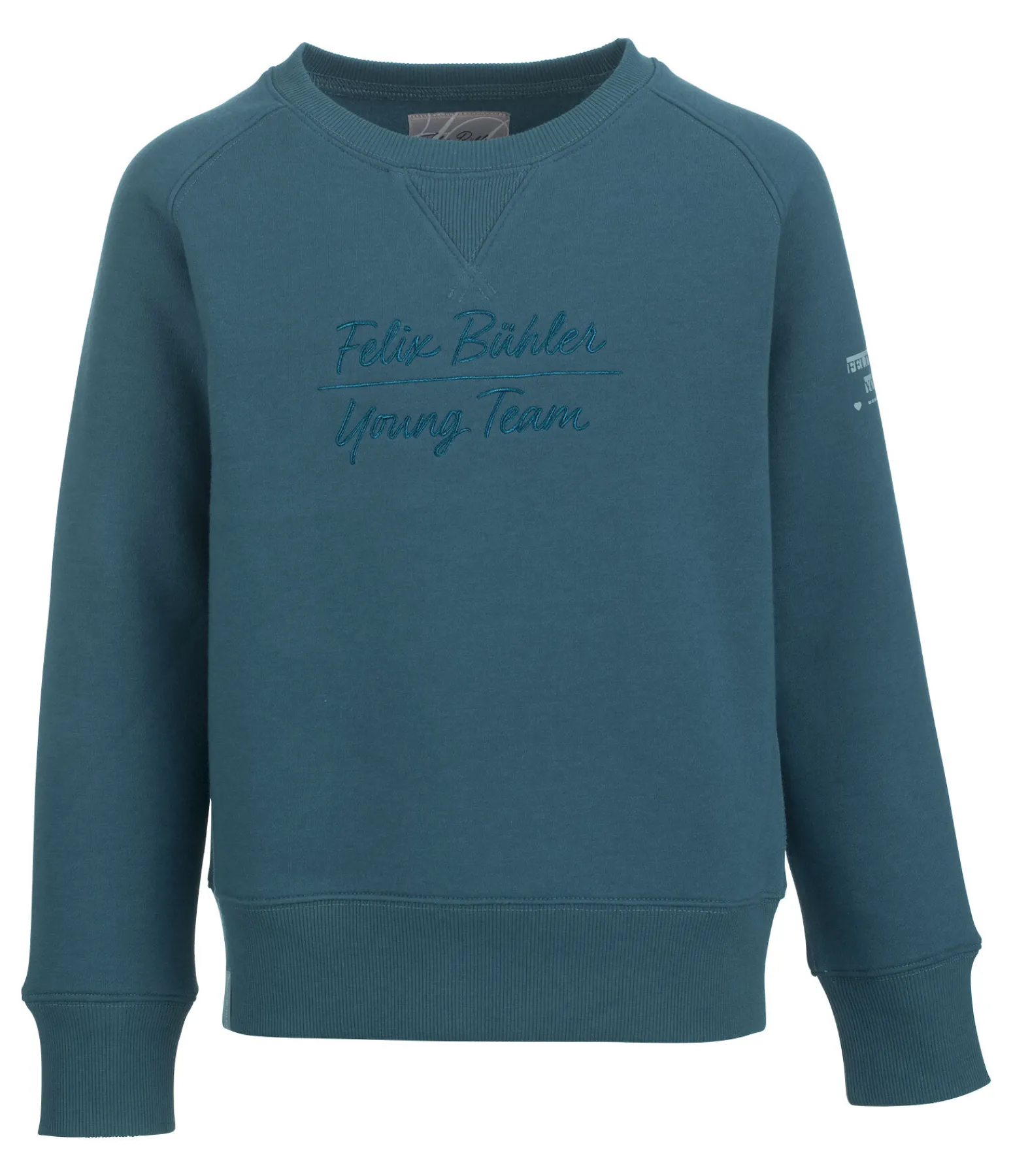 Sweat doux à col rond. Broderie « Felix Bühler Young Team » ton sur ton sur la poitrine et imprimé sur le bras. Finition douce en bord-côte douce sur le bas des manches, le col et l’ourlet. 65 % polyester, 35 % coton.