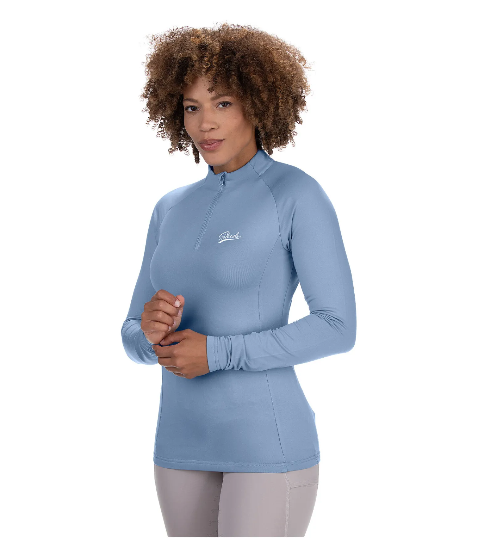 T-shirt technique à manches longues. Matière douce extensible et respirante. Séchage rapide. Col montant zippé avec protège-menton. Logo STEEDS sur la poitrine. Intérieur molletonné. 93 % polyester, 7 % élasthanne.