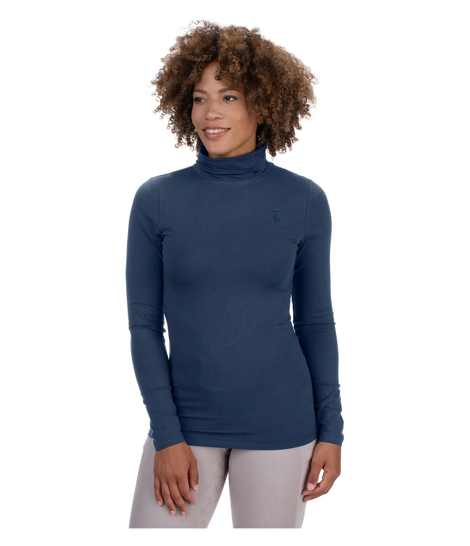 Superbe T-shirt basique à col roulé en jersey de coton doux et extensible. Broderie discrète Felix Bühler. 95 % coton, 5 % élasthanne.