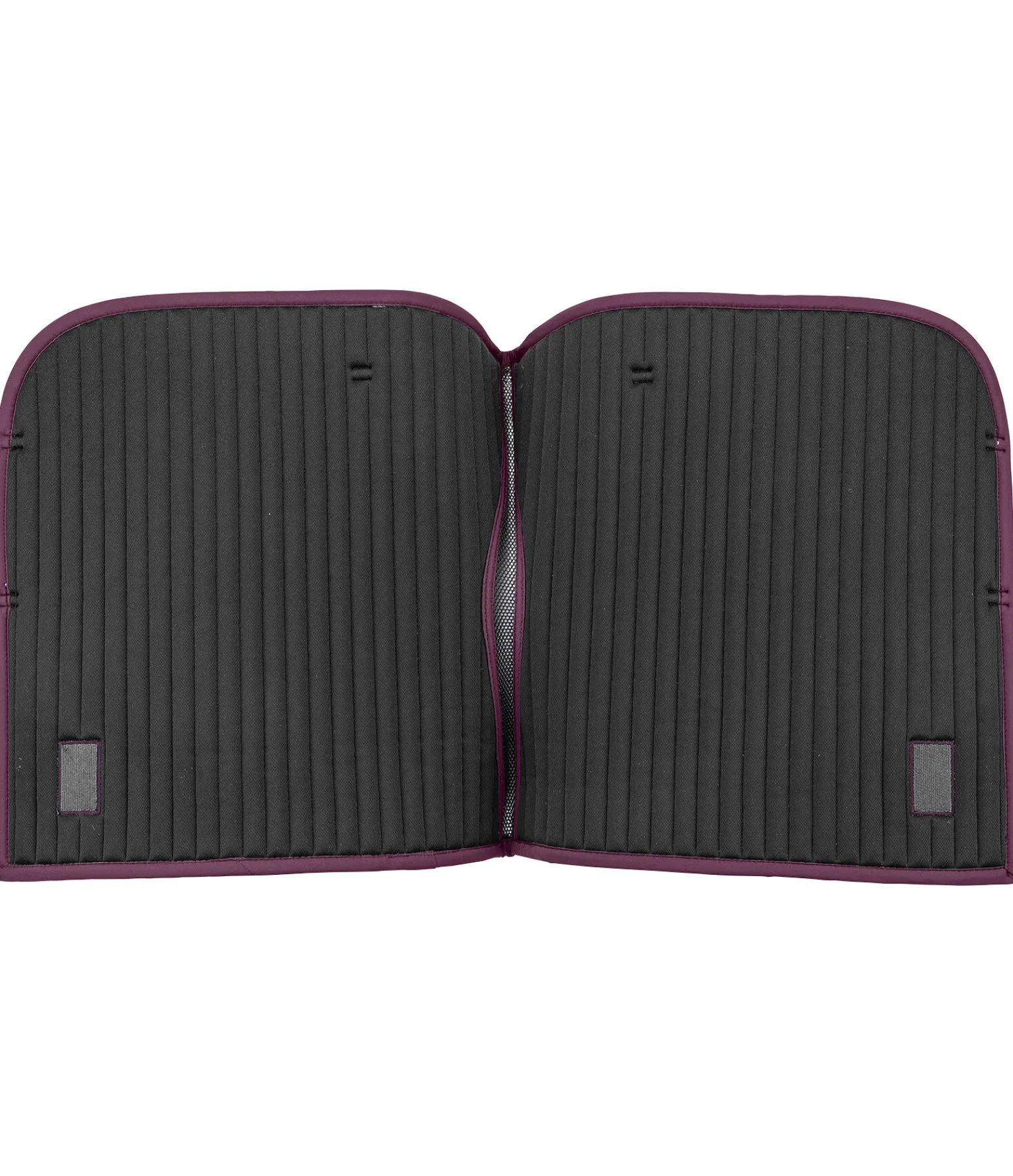 Élégant tapis de selle qui se distingue par son angle droit et sa plaque logo métallique classique. Surpiqûre sportive en rayures horizontales et cordon décoratif de couleur assortie. Insert en larges mailles alvéolées le long du dos pour une circulation de l’air optimale. Passants de sangle et de contre-sanglons avec patte auto-agrippante pratique. Dessous en Air mesh respirant et absorbant l’humidité. 100 % polyester.