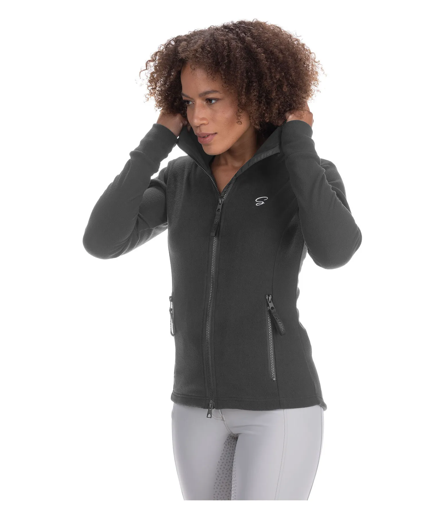 Veste à capuche en polaire douce. Fermeture à glissière double sens avec sous-patte et protège-menton. Deux poches latérales zippées. Logo STEEDS discret brodé sur la poitrine. Coupe légèrement plus longue à l’arrière. Matière anti-boulochage. 100 % polyester.