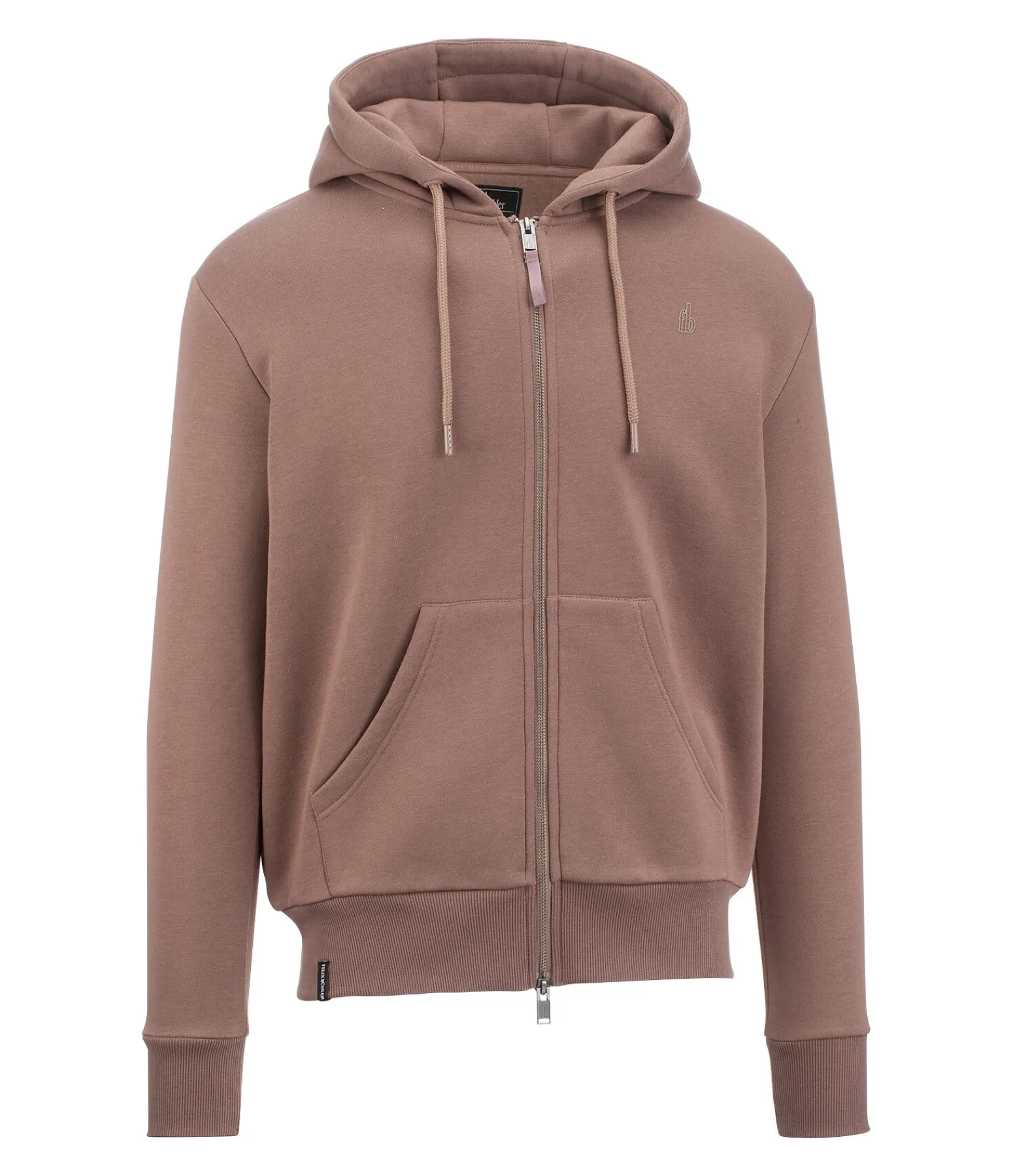 Veste sweat à capuche douce et sportswear en coton stretch de grande qualité. 2 poches avant. Finition douce en bord-côte sur le bas des manches et l’ourlet. Logo discret et nuancé sur la poitrine. 65 % polyester, 35 % coton.