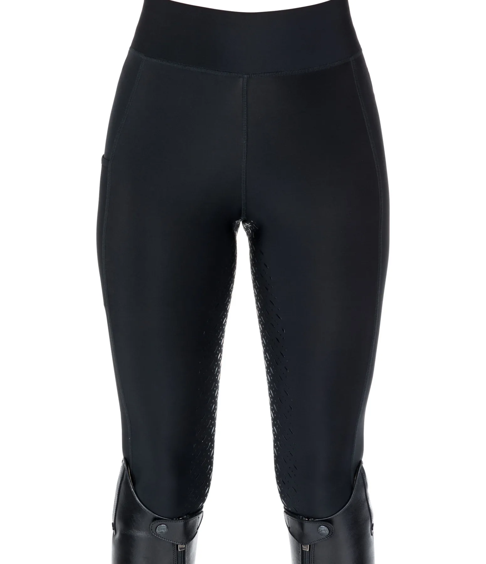 Legging d’équitation confortable. Matière respirante et extensible dans 4 directions. Séchage rapide. Fond intégral en silicone antidérapant pour une adhérence optimale à la selle. Poche pour téléphone portable sur la cuisse. Bas de jambe extensible sans patte auto-agrippante. 90 % polyester, 10 % élasthanne.