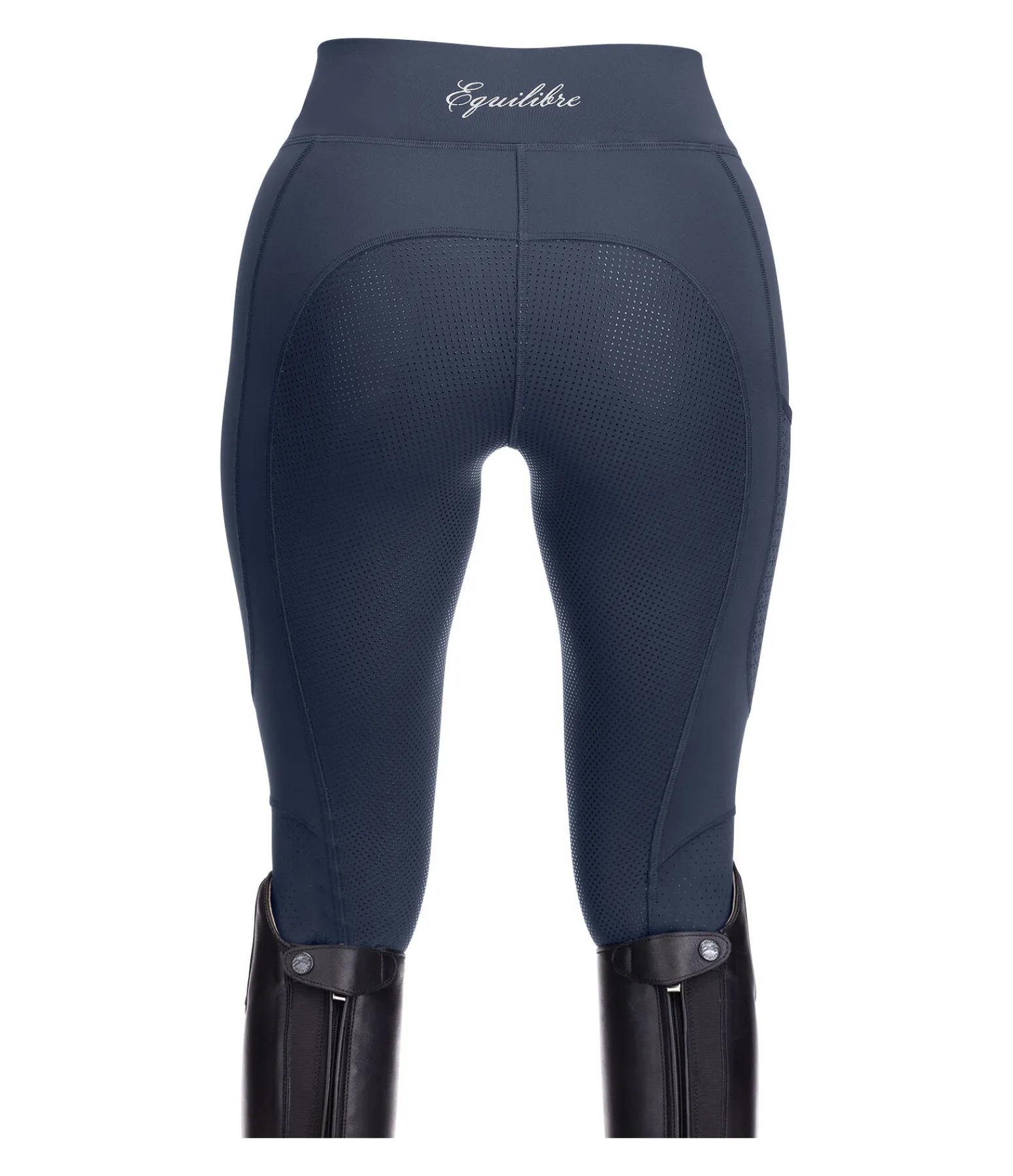 Legging d’équitation confortable à fond intégral grip en silicone. Stretch extensible dans 4 directions pour un effet sculptant garanti. Matière respirante à séchage rapide. Empiècements ajourés sur la jambe, grâce à une découpe laser, avec motif de petite fleur. Ceinture large avec passants. Une poche sur la jambe pour téléphone portable. Aucune couture sur les genoux. Signature Equilibre discrète à l’arrière. 82 % polyester, 18 % élasthanne.
