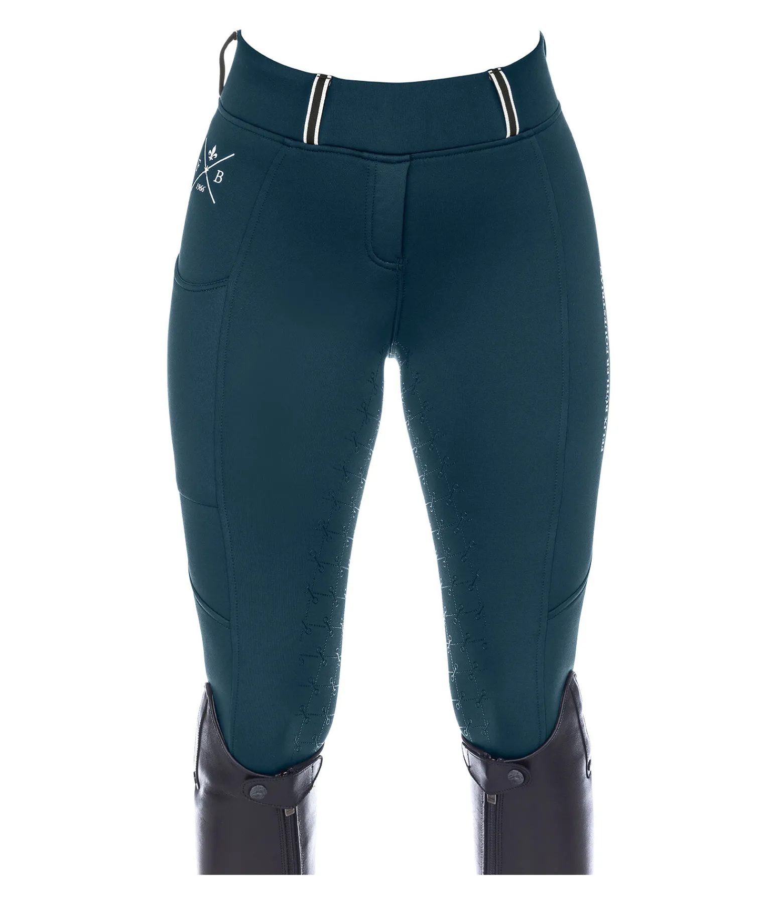 Legging d’équitation sportswear thermique avec fond intégral grip en silicone. Matière stretch respirante, extensible dans 4 directions. Séchage rapide. Intérieur molletonné. Imprimés Felix Bühler. Ceinture large avec passants. Une poche latérale zippée pour téléphone portable et deux fausses poches arrière. Aucune couture au niveau des genoux. Bas de jambe extensible. 60 % polyester, 33 % polyamide, 7% élasthanne.