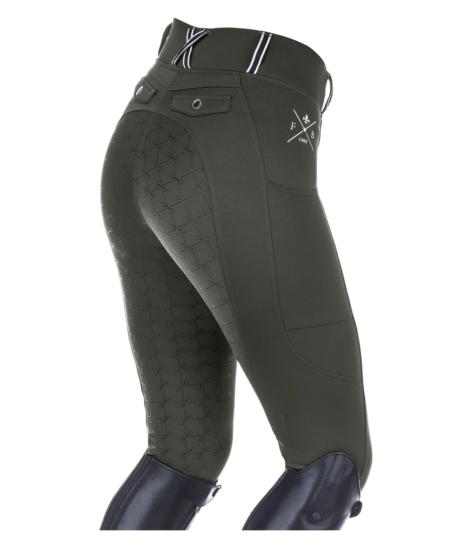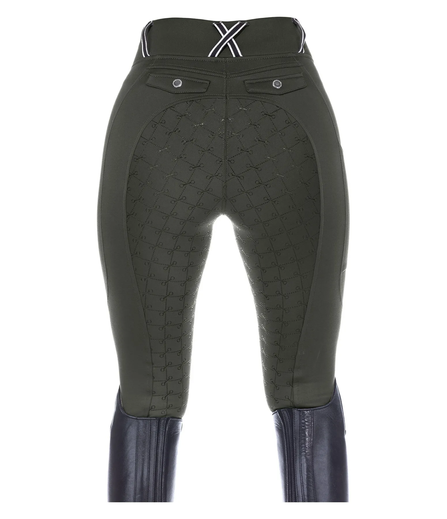 Legging d’équitation sportswear thermique avec fond intégral grip en silicone. Matière stretch respirante, extensible dans 4 directions. Séchage rapide. Intérieur molletonné. Imprimés Felix Bühler. Ceinture large avec passants. Une poche latérale zippée pour téléphone portable et deux fausses poches arrière. Aucune couture au niveau des genoux. Bas de jambe extensible. 60 % polyester, 33 % polyamide, 7% élasthanne.