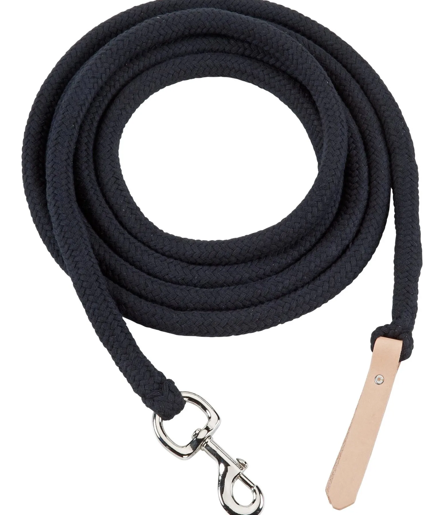 Très résistante grâce au lourd coeur en polyester. Gaine en coton naturel anti-dérapant. Avec Boltsnap et embout en cuir au bout de la longe. Disponible en 4 et 7 mètres.